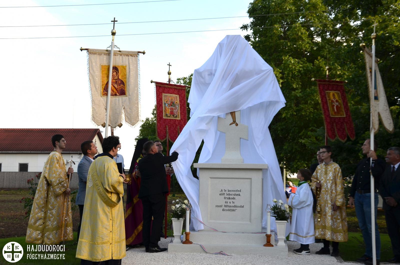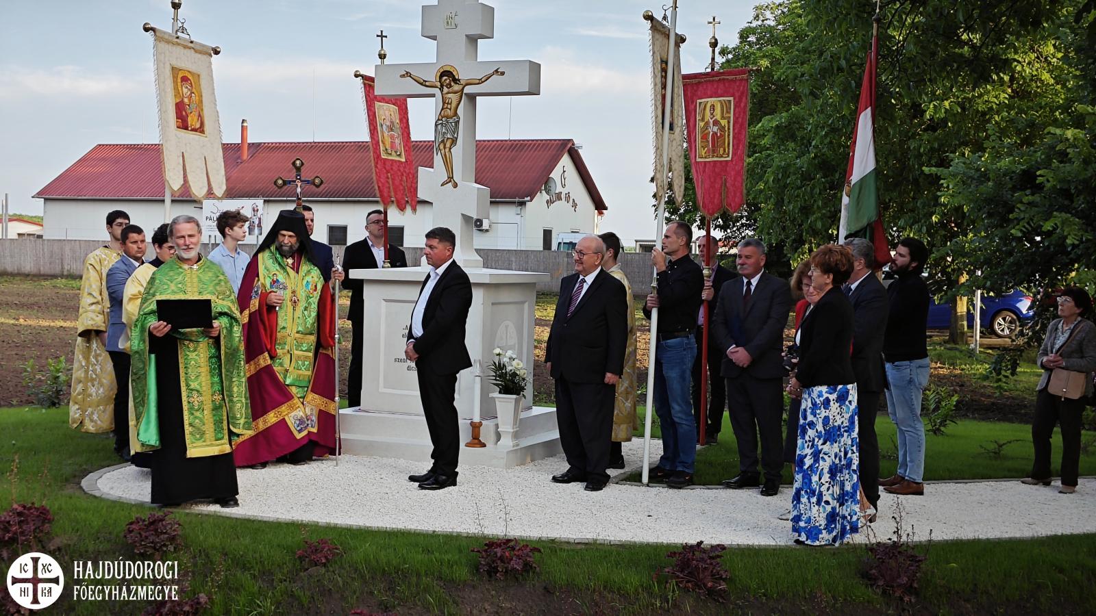 Hajdúböszörmény az ország negyedik legnagyobb közigazgatási területű települése és ezen a hatalmas területen még sohasem állt kereszt az út mentén. Szepesi Tibor, az Egyházközség Képviselő Testületének tagja fogadalmat tett, hogy Hajdúböszörmény határában útmenti keresztet állít. Elhatározását tettek követték. Részletesen kidolgozta tervét, s hogy a történeti hűséget megtartsa, tanulmányokat végzett a kereszt szimbólumait illetően. Külső okok miatt sokszor ütközött nehézségekbe. Ám, hogy véghez tudja vinni fogadalmát, az imából, a Bibliából és a családi összefogásból merített erőt. Ez év Nagypéntekjén kezdte el saját kezűleg a kivitelezést, (zsaluzás, betonozás stb.) szépen lépésről lépésre haladt segítőivel együtt. Közben felvette a kapcsolatot Janka Gábor ikonfestő atyával, aki megfestette a görögkatolikus keresztre a korpuszt, a testet. Fülöp metropolita atya kitűzte a szentelés időpontját Pünkösd hétfőre, ekkorra a kereszt és a környezete is szépen elkészült. A vecsernye végén Fülöp atya beszédében rávilágított, hogy miért is állítunk keresztet: