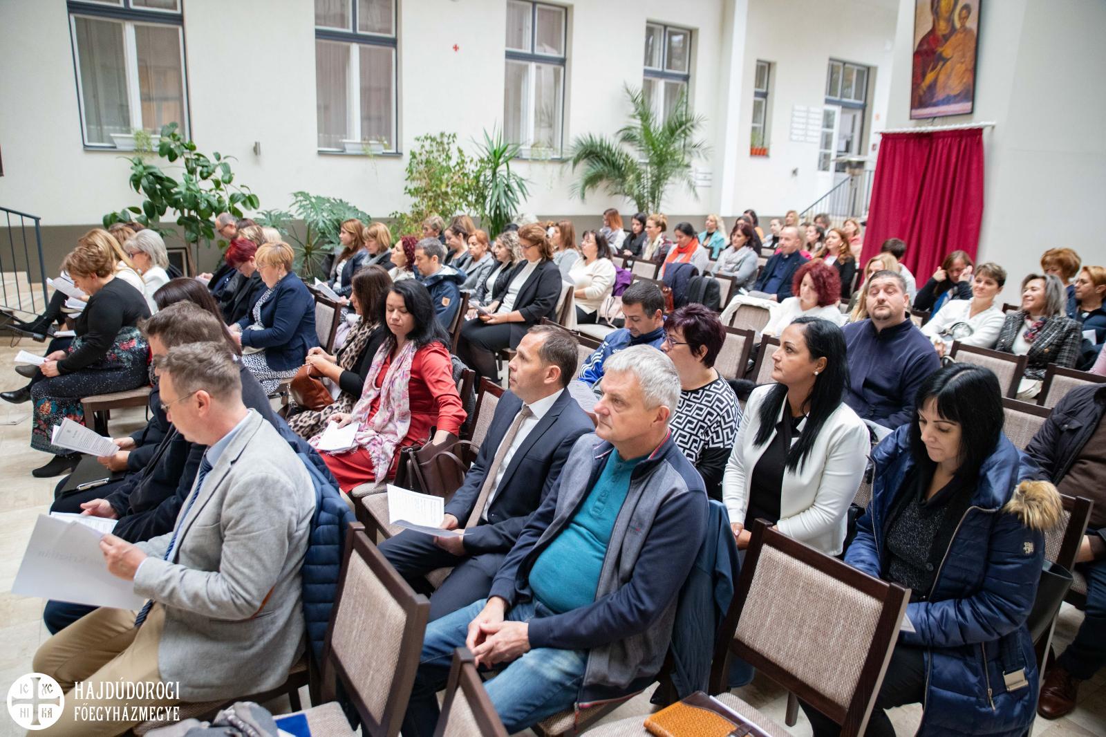 A görögkatolikus egyház több mint egy évtizedre vállal jelentős szerepet többek között a szociális és gyermekvédelem területén is – ismertette dr. Tóthné dr. Tőkés Margaréta, a Hajdúdorogi Főegyházmegye gyermekvédelmi fenntartói irodájának vezetője. „A Hajdúdorogi Főegyházmegye egyre bővülő szolgáltatási formákkal áll helyt ezen a nehezített területen, hiszen a három gyermekvédelmi szakellátási intézményünk mellett 2023-tól gyermekjóléti alapellátási feladatot is megvalósítunk, azaz bölcsődei elhelyezést is biztosítunk Hajdúdorogon, illetve 2024-től házi segítségnyújtó szolgálatot is működhetünk Debrecen városában. A szakmai sokszínűség biztosítása és a fejlődés nem állhat meg, ezért 2025-től három új bölcsőde nyitja meg kapuit: Debrecenben, Makón és Gödöllőn. Mindezen feladatvállalás azonban mit sem ér 550 fő munkavállaló és nevelőszülő nélkül” – mondta a vezető.