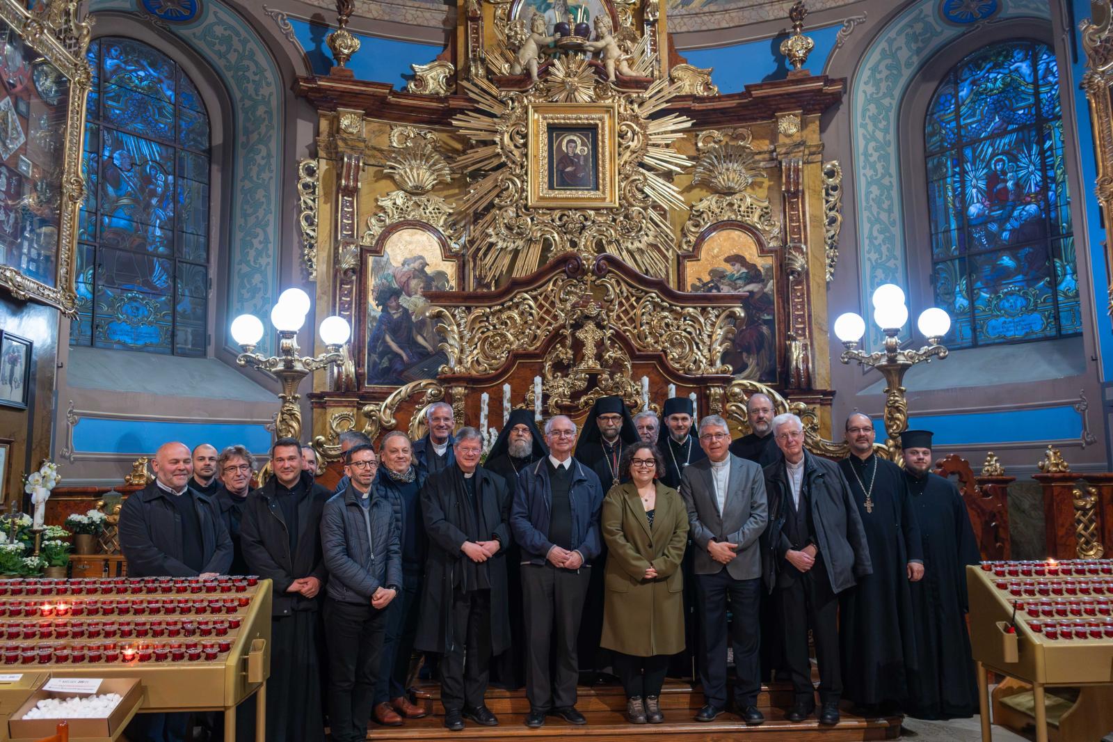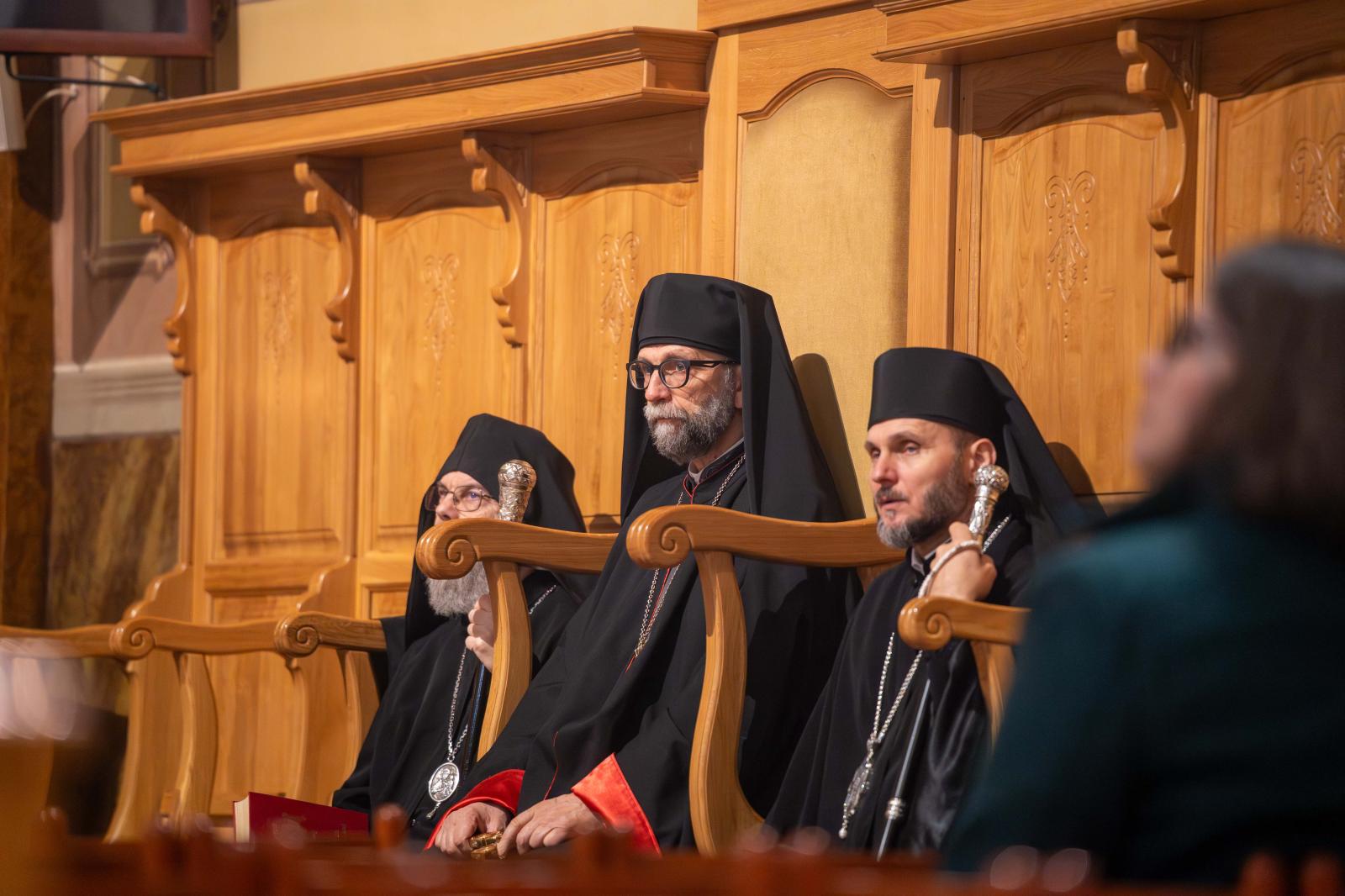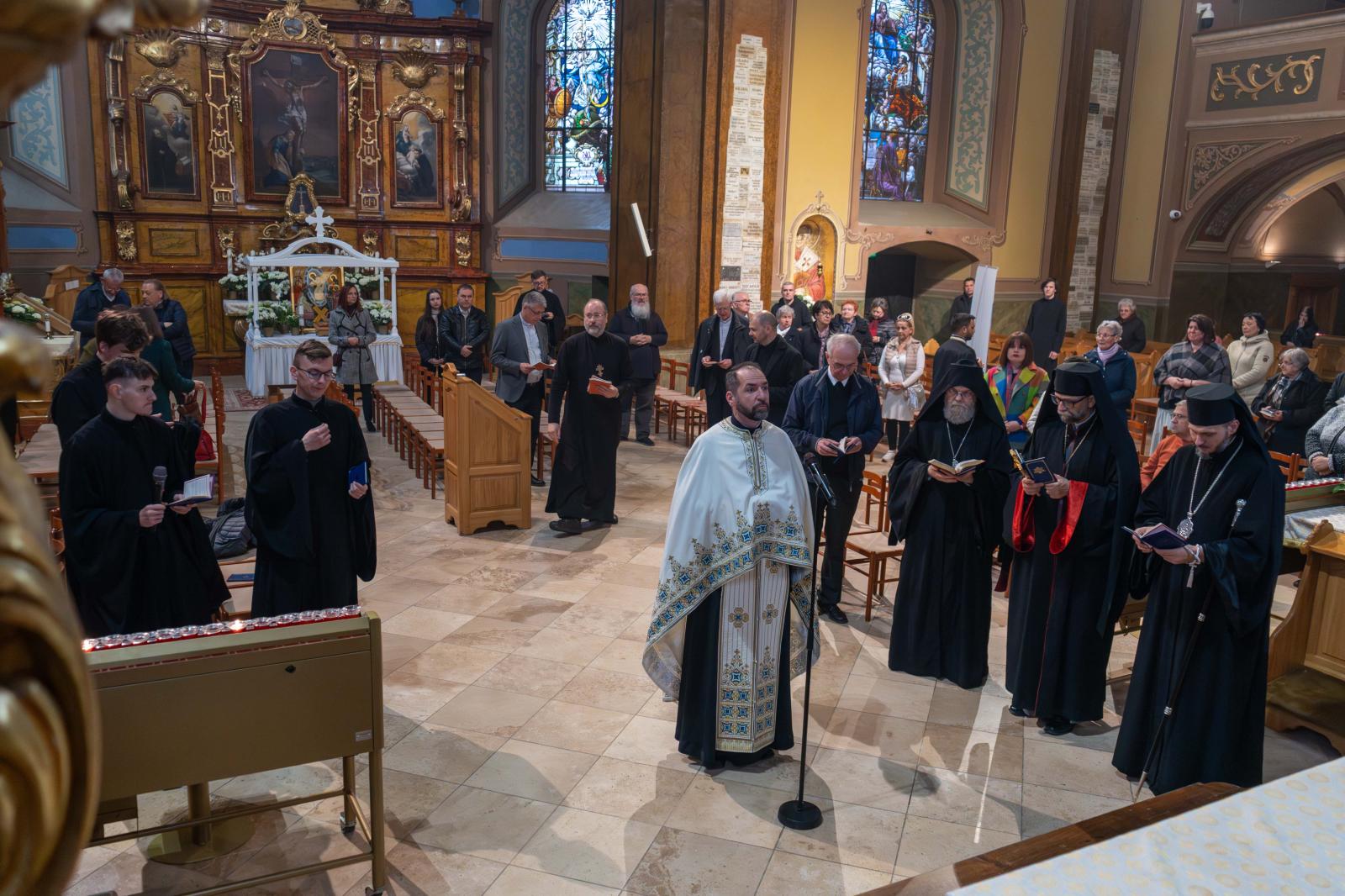 A vendégek délután mindhárom püspökünkkel és papjainkkal együtt Szent Liturgián vettek részt a kegytemplomban, majd a jelenlévő hívekkel együtt német és magyar nyelvű akathisztoszt imádkoztak a kegykép előtt.