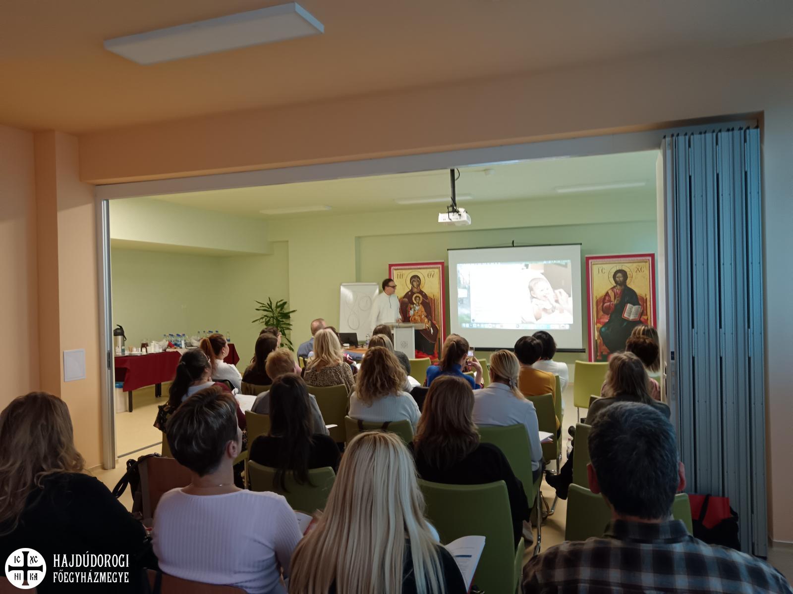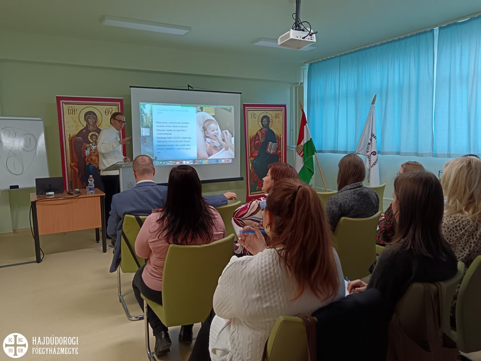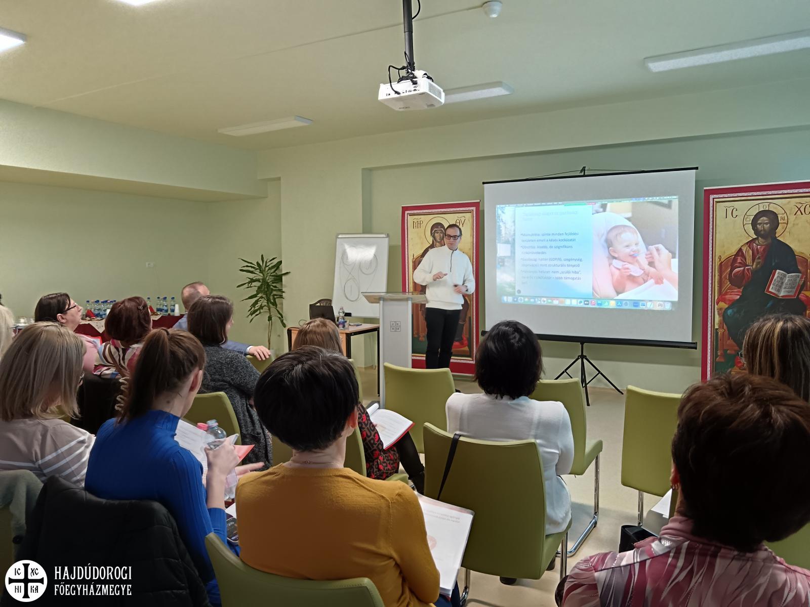 Az első alkalom 2025. november 25-én, kedden volt, „blended módon”. A belső szakmai képzésre a Debrecen és környékén lévő intézményeinkből személyes jelenlétre vártuk az érdeklődőket, a távolabbi intézményeinkből érdeklődők számára pedig online csatlakozással teremtettük meg a technikai feltételeket.