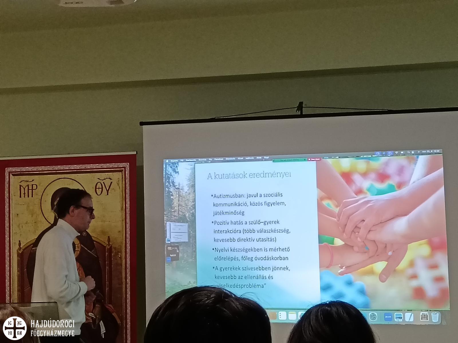 A Hajdúdorogi Főegyházmegye Oktatási Irodája kezdeményezésére Dobos Károly, a Szent Efrém Görögkatolikus Óvoda, Általános Iskola és Alapfokú Művészeti Iskola logopédusa 2. éve dolgozik egy szakmai műhely és belső képzési sorozat kialakításán. Célja, hogy a Magyarországon még nem ismert, újszerű kommunikációt fejlesztő modellek alkalmazásával ismertesse meg a Főegyházmegye fejlesztésben részt vevő munkatársait. Az idei tanévben Szó-Tánc: SNI-logopédia lépésről-szóra címmel indított előadássorozatot, mely 4 alkalommal kerül megrendezésre a 2025/2026-os tanév folyamán Debrecenben a Faraktár utcai Görögkatolikus Képzési Központunkban.