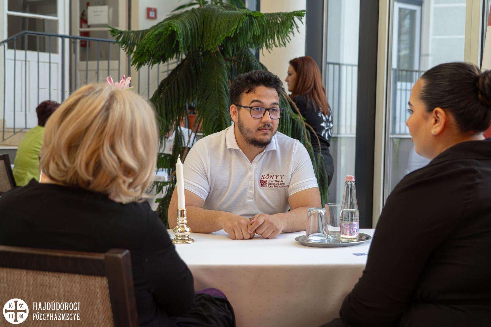 Mező-Halász Krisztina, a Szent Miklós Görögkatolikus Roma Szakkollégium vezetője "élő könyvtárba" hívta az ünnepség résztvevőit, akik egy-egy szakkollégista történetével ismerkedhettek meg. A szakmai vezető úgy véli: a roma szakkollégiumok szakmai munkájának egyik alapköve a roma identitás erősítése a fiatalokban. Mi is az identitás? Röviden fogalmazva: önazonosság, öntudat. De mi történik akkor, ha ehhez az identitáshoz életük során gyakran társulnak olyan negatív élmények, mint a szégyen, kirekesztés, gúny, szorongás vagy éppen szenvedés?