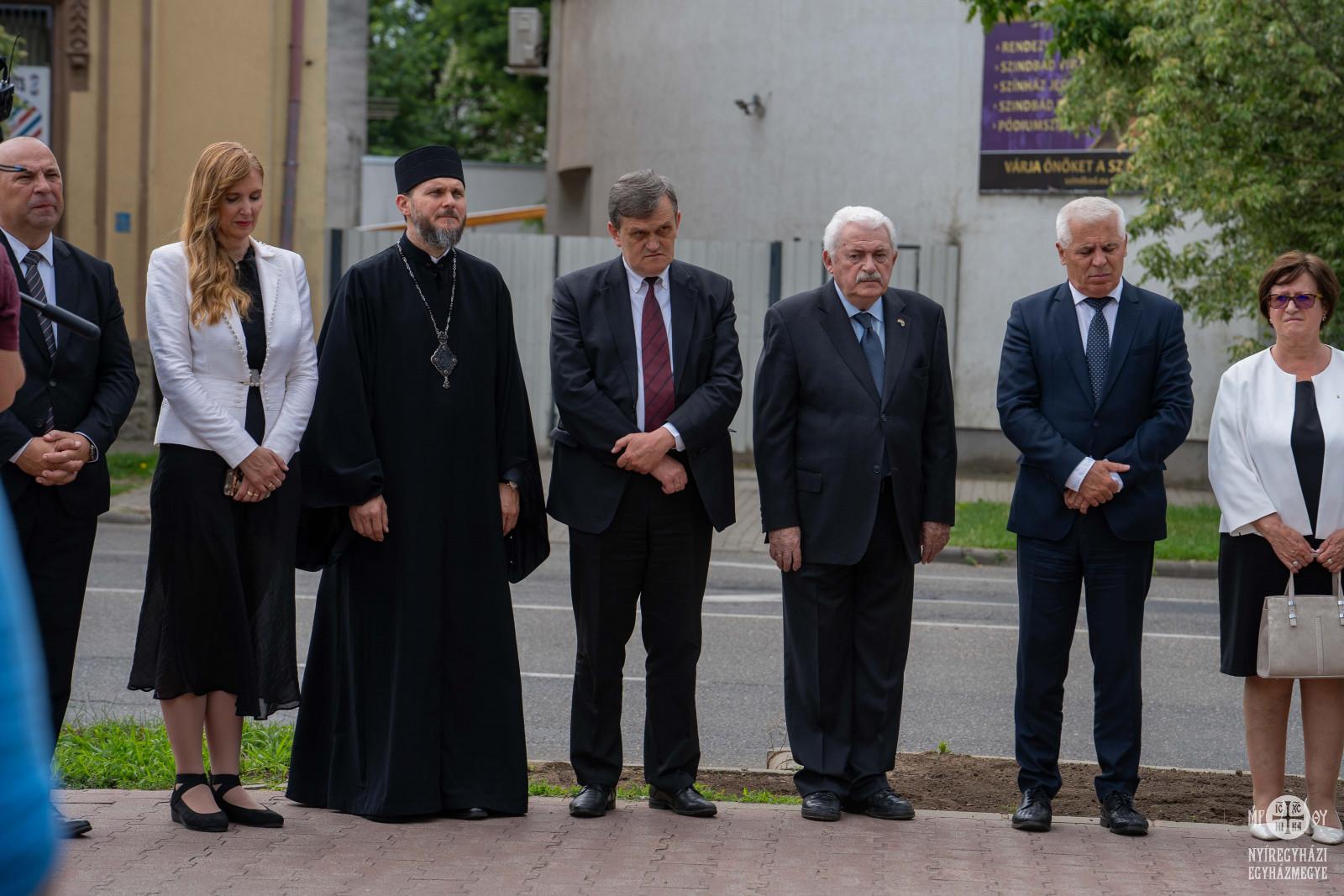 Az ünnepélyes átadón jelen volt Szocska A. Ábel nyíregyházi megyéspüspök, prof. dr. Grósz Andor, a Mazsihisz elnöke, dr. Fónagy János miniszterhelyettes, a Nemzetgazdasági Minisztérium parlamenti államtitkára, dr. Szabó Tünde kormánybiztos és országgyűlési képviselő, Seszták Oszkár, a vármegyei közgyűlés elnöke. Az ünnepség utcán zajló része után a Görögkatolikus Múzeumban folytatódtak az emléknap programjai.