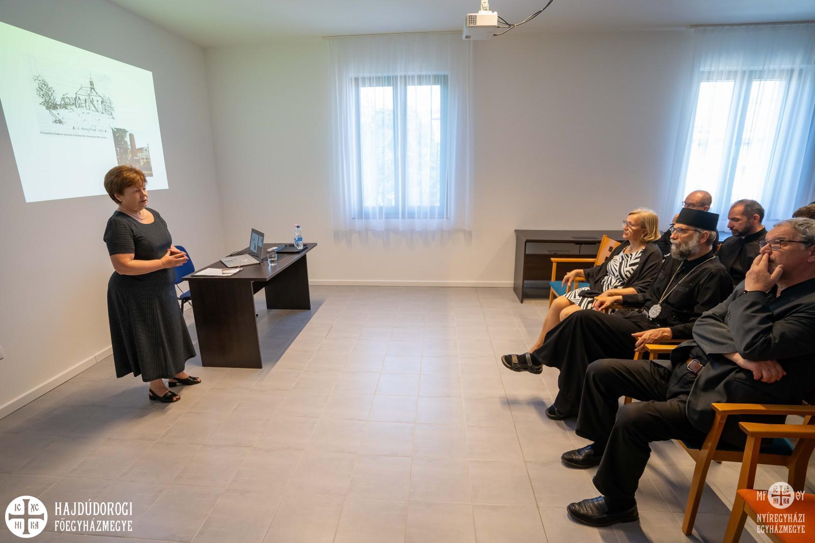 Később a múzeum előadótermében Botlatókő, emléktábla és ami mögötte van címmel dr. Kührner Éva, a Szent Atanzáz Görögkatolikus Hittudományi Főiskola főkönyvtárosa tartott előadást. A helytörténeti adatokat, fotókat összegyűjtő és elemző előadásban a hallgatók megismerhették Nyíregyháza történetét s azon belül a Nyíregyházán és környékén élő zsidó családok városban betöltött szerepét, sorsát egészen a gettósításig és a gyűjtőtáborokba való szállításig, sőt a túlélőkről is szót ejtett, kiemelten azokra figyelve, akik a főiskola területén éltek.
