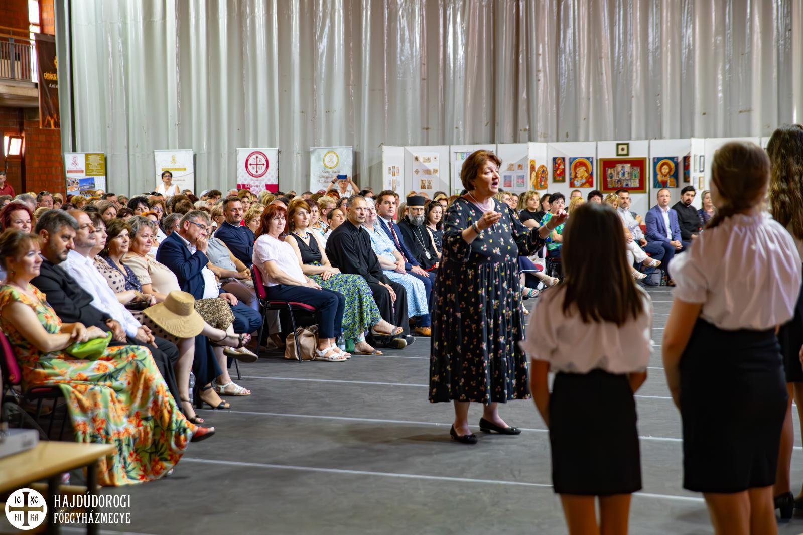 A Szent Liturgia után a várva várt elismerések átadása következett a tornacsarnokban. Az ünnepséget a Csengettyű Gyermekkar nyitotta meg. A Nagy Szent Bazil Görögkatolikus Általános Iskola Kórusának tagjai 3-8. osztályos tanulók. Repertoárjukban megtalálhatóak a magyar népdalok, népdalfeldolgozások, más népek dalai, megzenésített versek, musical részletek. Rendszeresen fellépnek egyházi és iskolai ünnepségeken, városi szervezésű programokon. Csapatuk számtalan elismerést zsebelt már be. Vezényelt: Radics Teréz, zongorán közreműködött: Szkiba Istvánné.