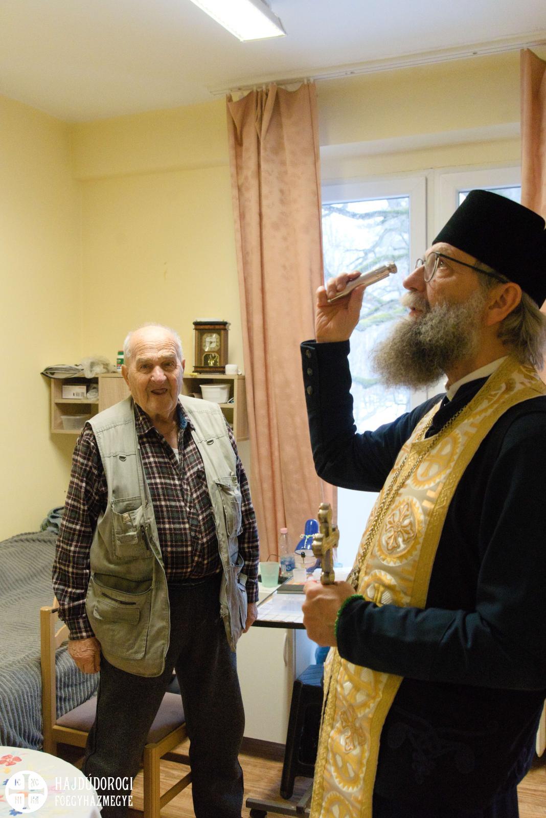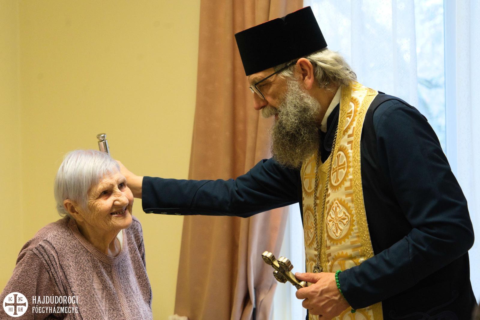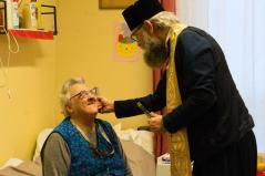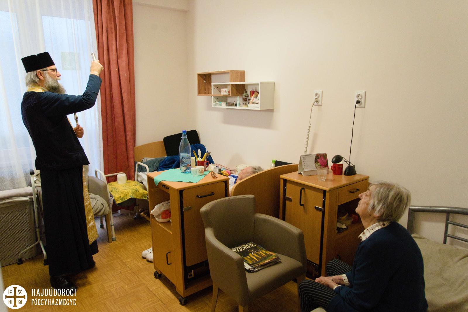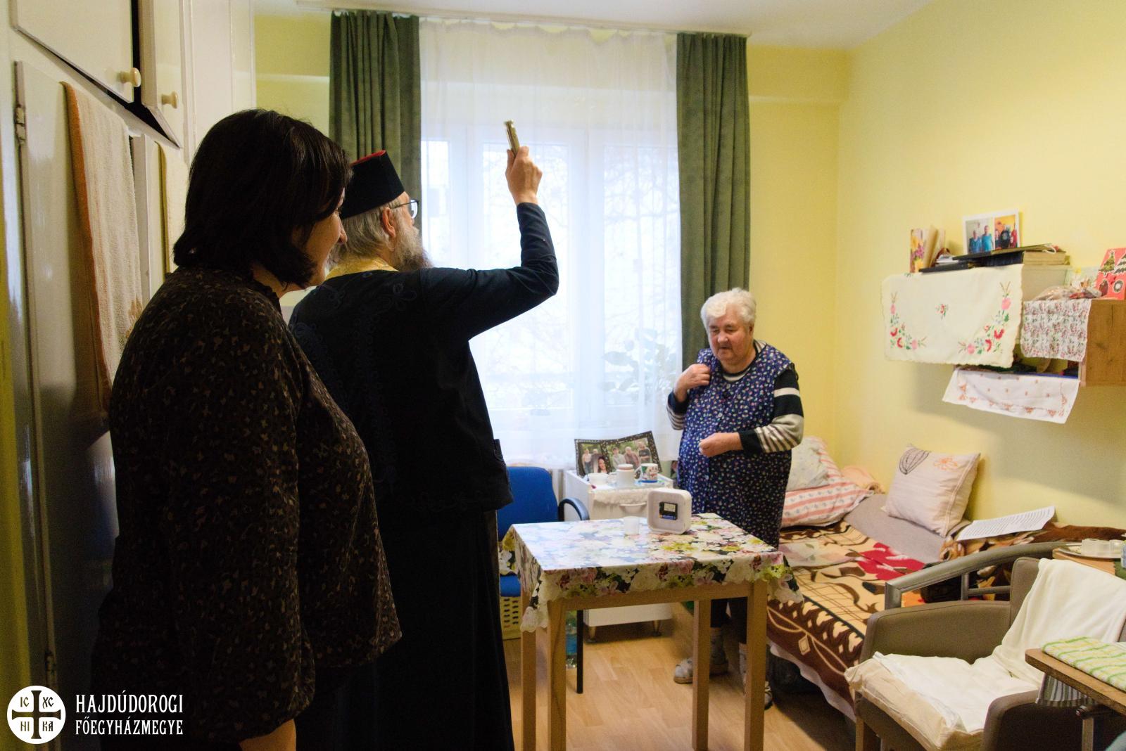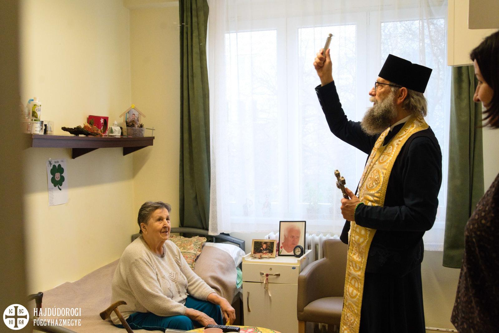 Mosolygó unokák és dédunokák, néhol az elhunyt hitves képe az asztalon, sajátkezűleg készített apróságok, Jézus és Mária-ikon a falakon – ez fogadta az ellátottak szobájába lépő metropolitát. Ki a rádiót halkította le a vendég érkezésekor, ki a Coelho-regényt csukta be, amit éppen olvasott. Fülöp atya a szoba megszentelése után külön-külön minden lakónak a kereszt jelét rajzolta a homlokára. Néhányan látszólag nem érzékelték az eseményeket, mégis volt, aki ámennel köszönt el, s olyan is, aki megszorította Fülöp atya kezét az áldás után.