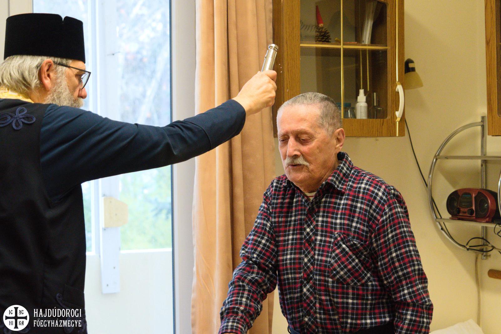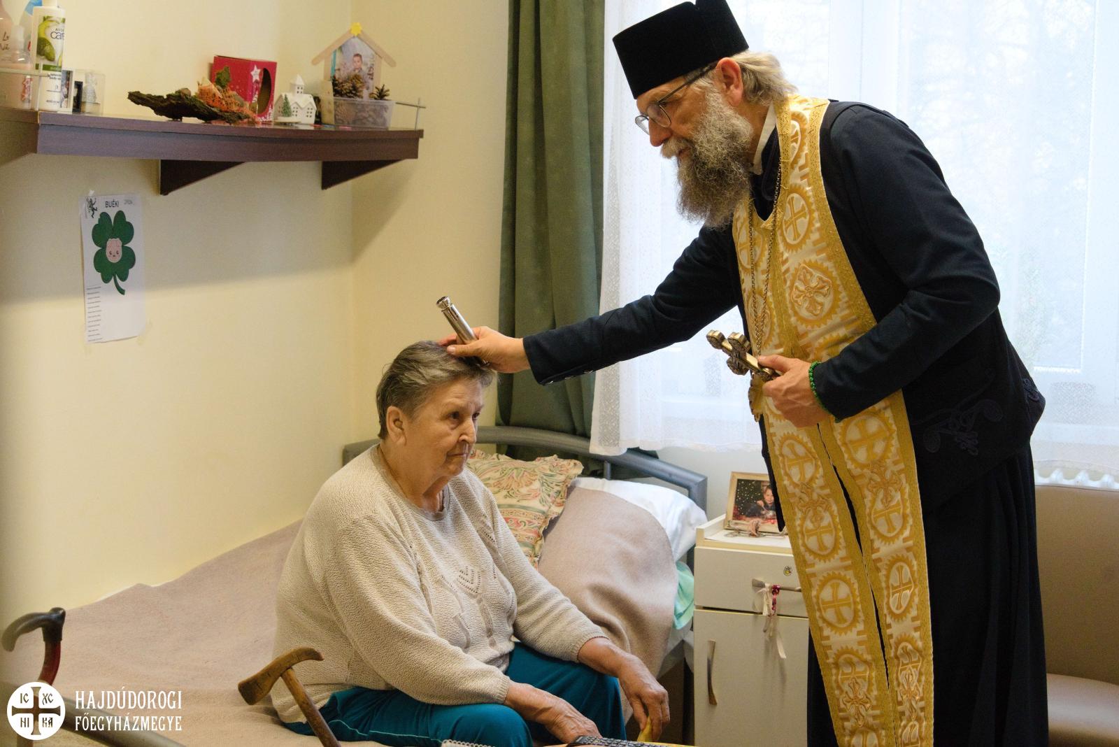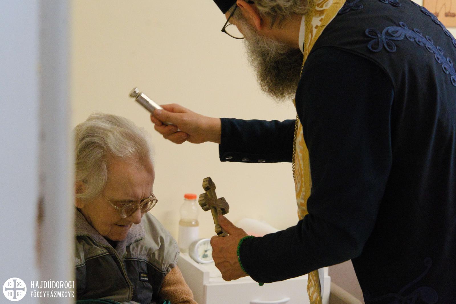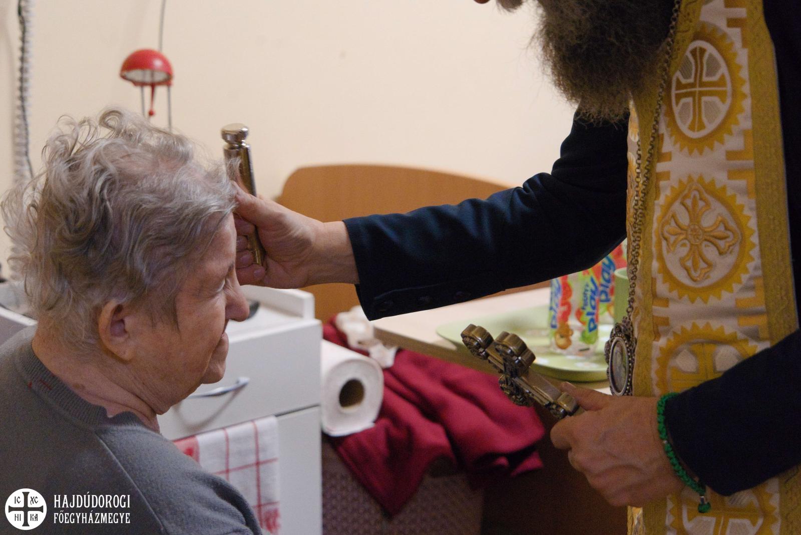 Mosolygó unokák és dédunokák, néhol az elhunyt hitves képe az asztalon, sajátkezűleg készített apróságok, Jézus és Mária-ikon a falakon – ez fogadta az ellátottak szobájába lépő metropolitát. Ki a rádiót halkította le a vendég érkezésekor, ki a Coelho-regényt csukta be, amit éppen olvasott. Fülöp atya a szoba megszentelése után külön-külön minden lakónak a kereszt jelét rajzolta a homlokára. Néhányan látszólag nem érzékelték az eseményeket, mégis volt, aki ámennel köszönt el, s olyan is, aki megszorította Fülöp atya kezét az áldás után.
