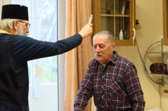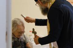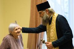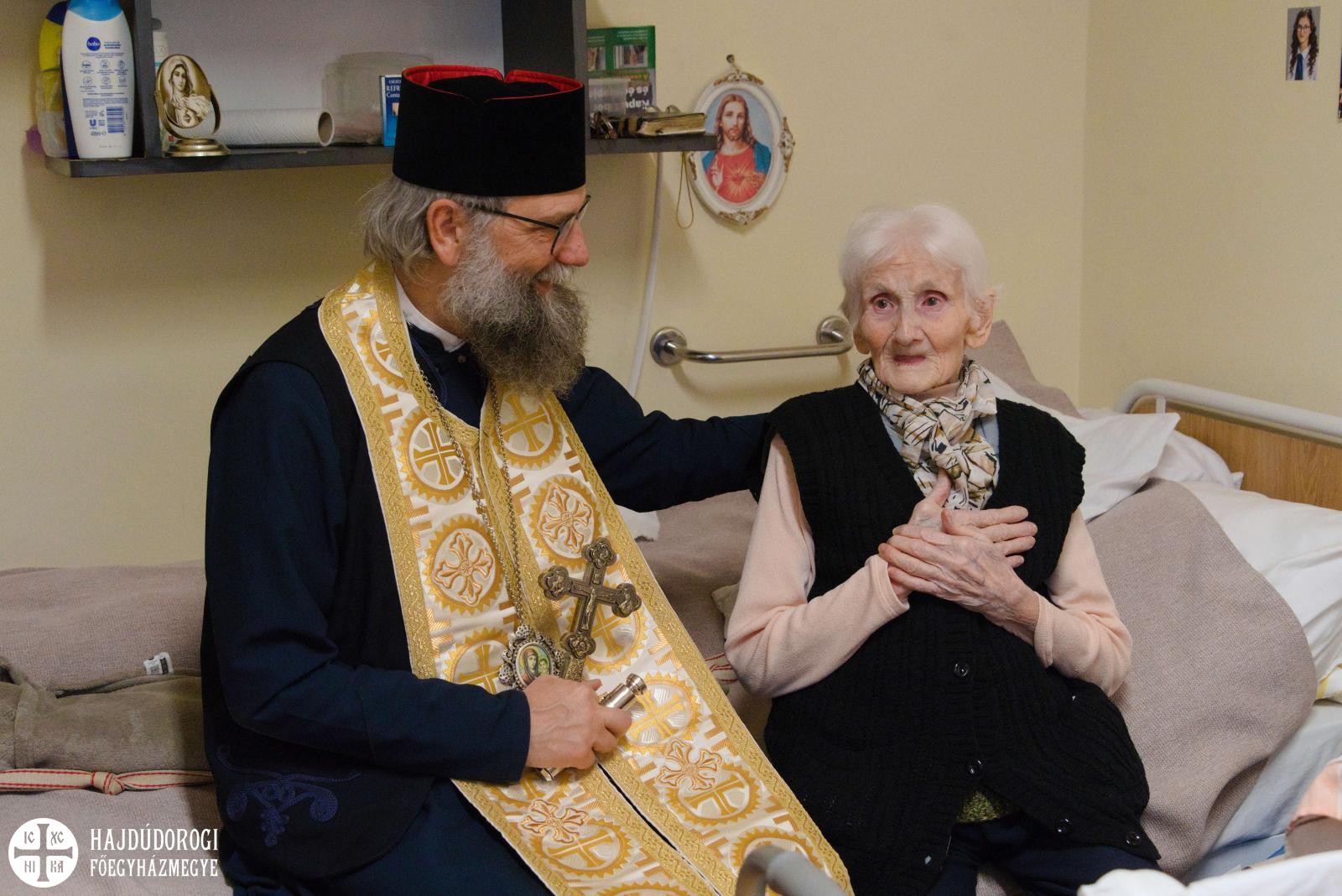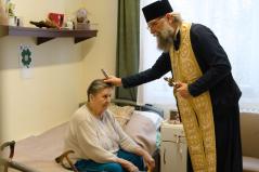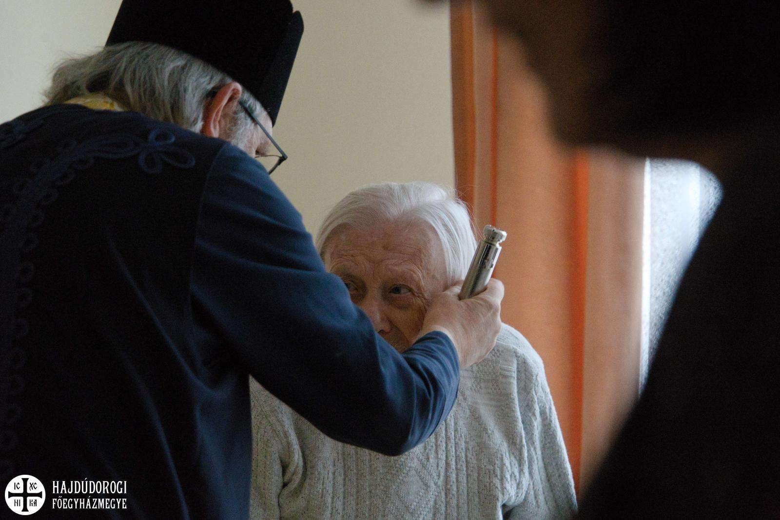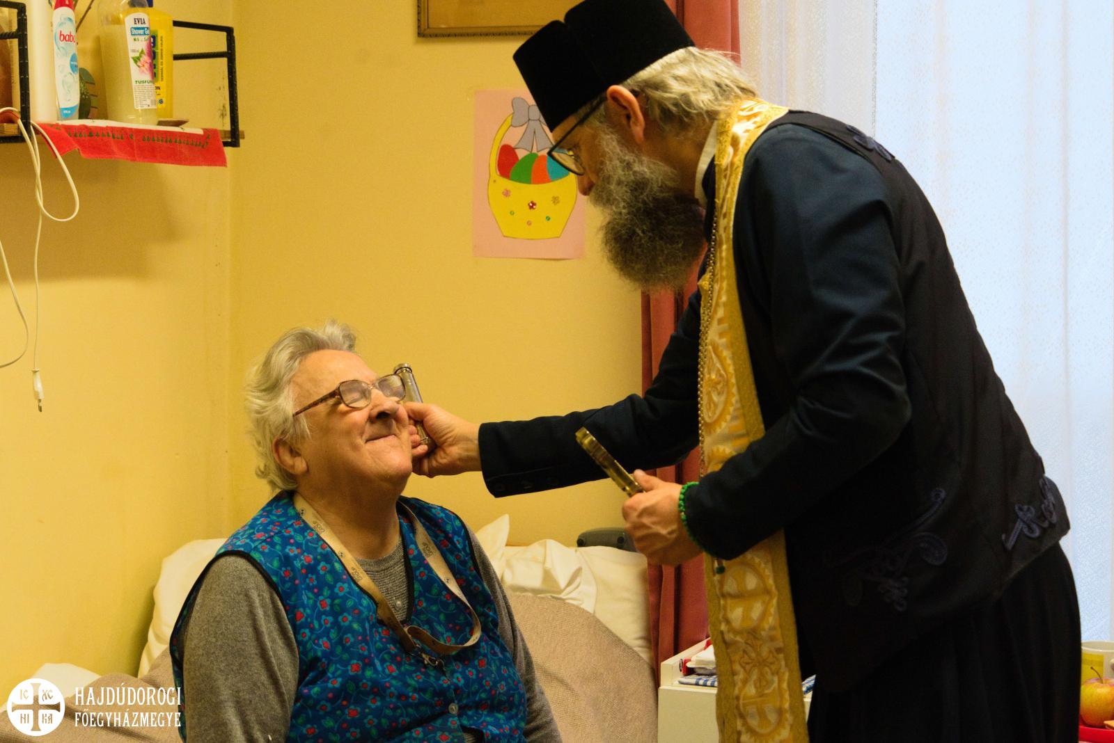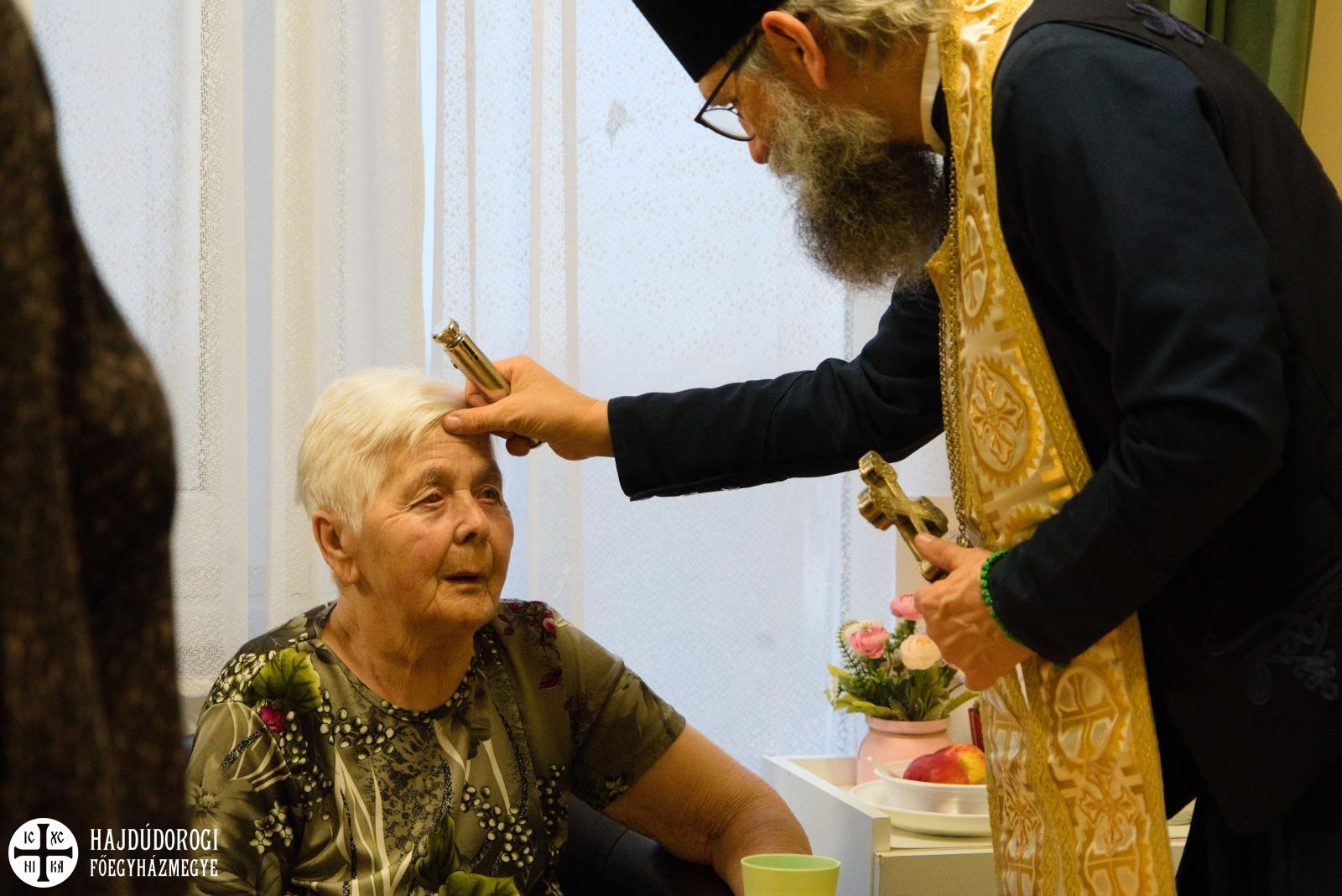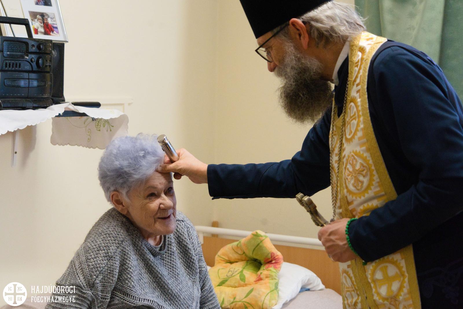 Mosolygó unokák és dédunokák, néhol az elhunyt hitves képe az asztalon, sajátkezűleg készített apróságok, Jézus és Mária-ikon a falakon – ez fogadta az ellátottak szobájába lépő metropolitát. Ki a rádiót halkította le a vendég érkezésekor, ki a Coelho-regényt csukta be, amit éppen olvasott. Fülöp atya a szoba megszentelése után külön-külön minden lakónak a kereszt jelét rajzolta a homlokára. Néhányan látszólag nem érzékelték az eseményeket, mégis volt, aki ámennel köszönt el, s olyan is, aki megszorította Fülöp atya kezét az áldás után.