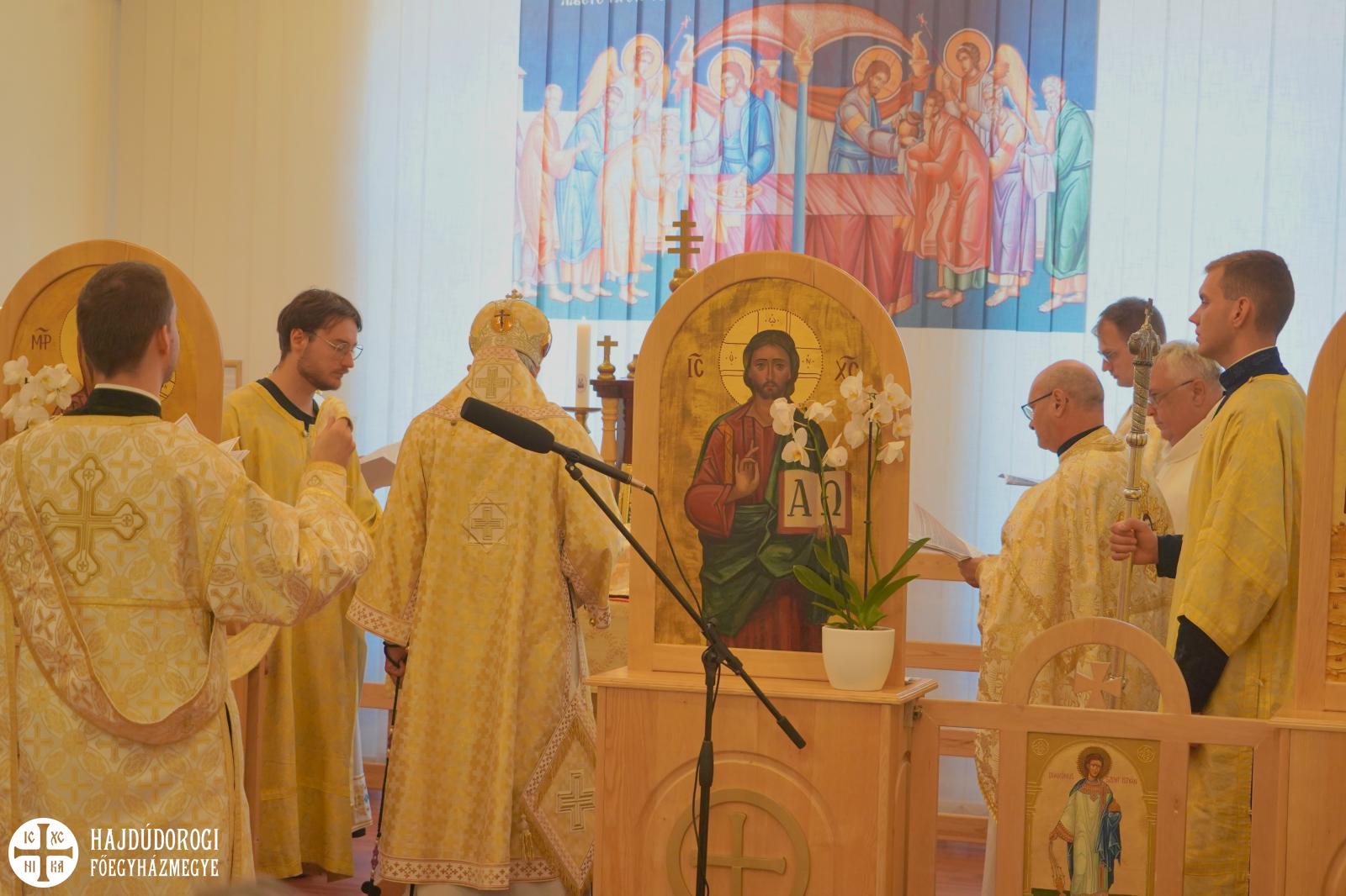 A nap apostoli szakaszát a Korintusiakhoz írt első levélből Timkó Tamás karnagy, kántor olvasta fel. A szívtelen szolgáról szóló példabeszédet pedig Papp András diakónus tolmácsolta Szent Máté evangéliumából. Az ünnepi prédikációt Kocsis Fülöp érsek-metropolita mondta.