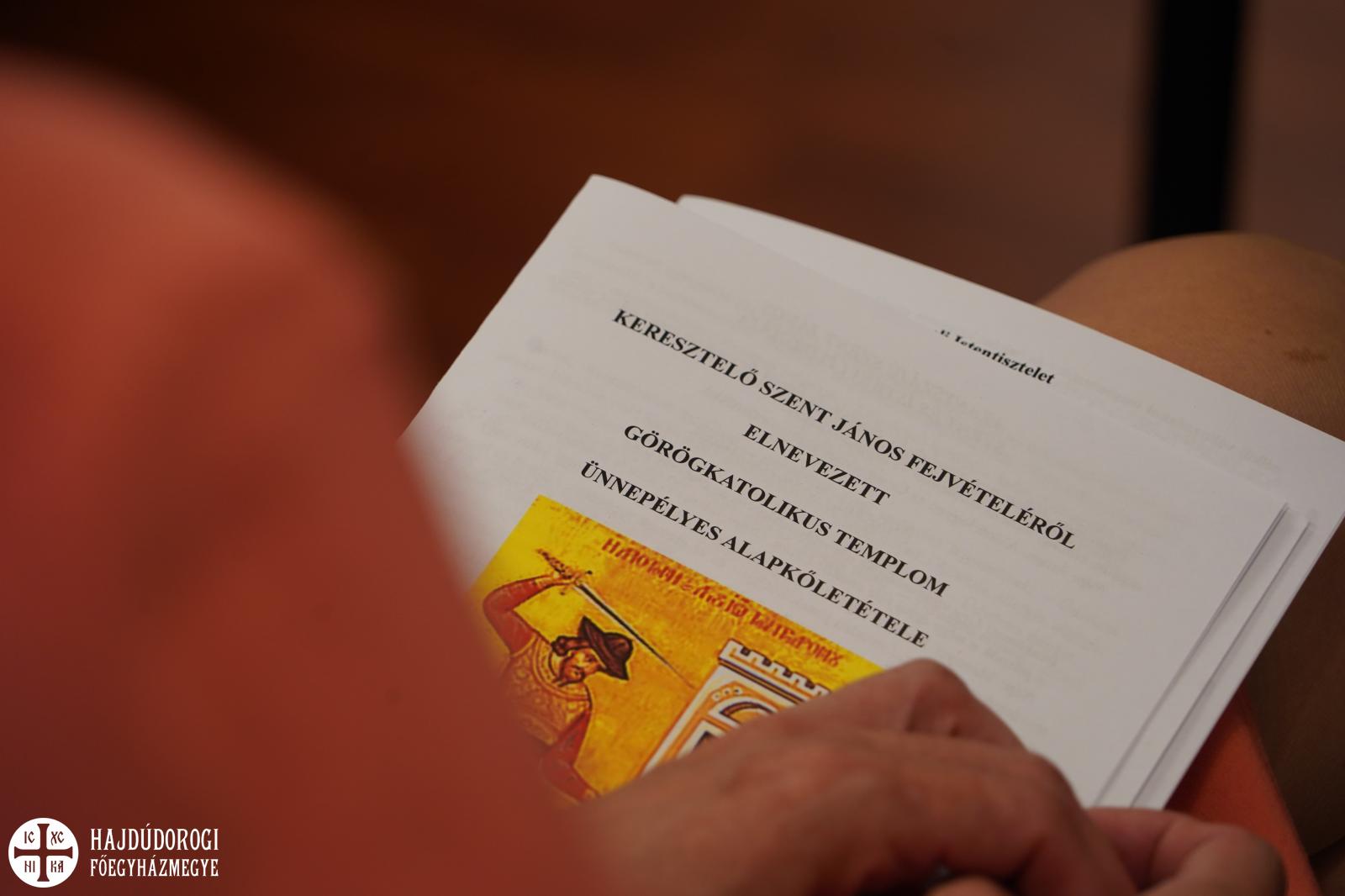 A Szent Liturgiát követően a közösségi házzal szomszédos telken folytatódott az ünnep. A területet az önkormányzat adományozta az egyházközségnek. Itt épül majd a nagyjából 150 négyzetméter területű, 90-100 férőhelyes, Keresztelő Szent János fejevétele címünnepű görögkatolikus templom. Fülöp érsek, László atya, Boros Pál, a templom tervezője és dr. Fekete Gábor alpolgármester előbb egy időkapszulát helyeztek el az épülő templom alapjába. A kapszulába többek között az eseményre készült meghívó egy példánya, a szervezőlelkészség és a parókia alapító okiratának másolata, a Görögkatolikus Szemle és a Petőfi Népe megyei lap legújabb száma, fémpénz, a Görögkatolikus Metropólia megalapításának 10. évfordulójára készült emléklap és az önkormányzat felajánlásából Kecskemét zászlója került.