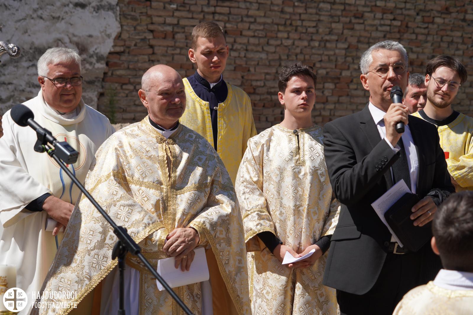 Fülöp metropolita pedig a Hajdúdorogi Főegyházmegye támogatásáról biztosította az egyházközséget, kiemelve: reméli, a közösség tagjai is hozzájárulnak a templomépítés költségeihez.