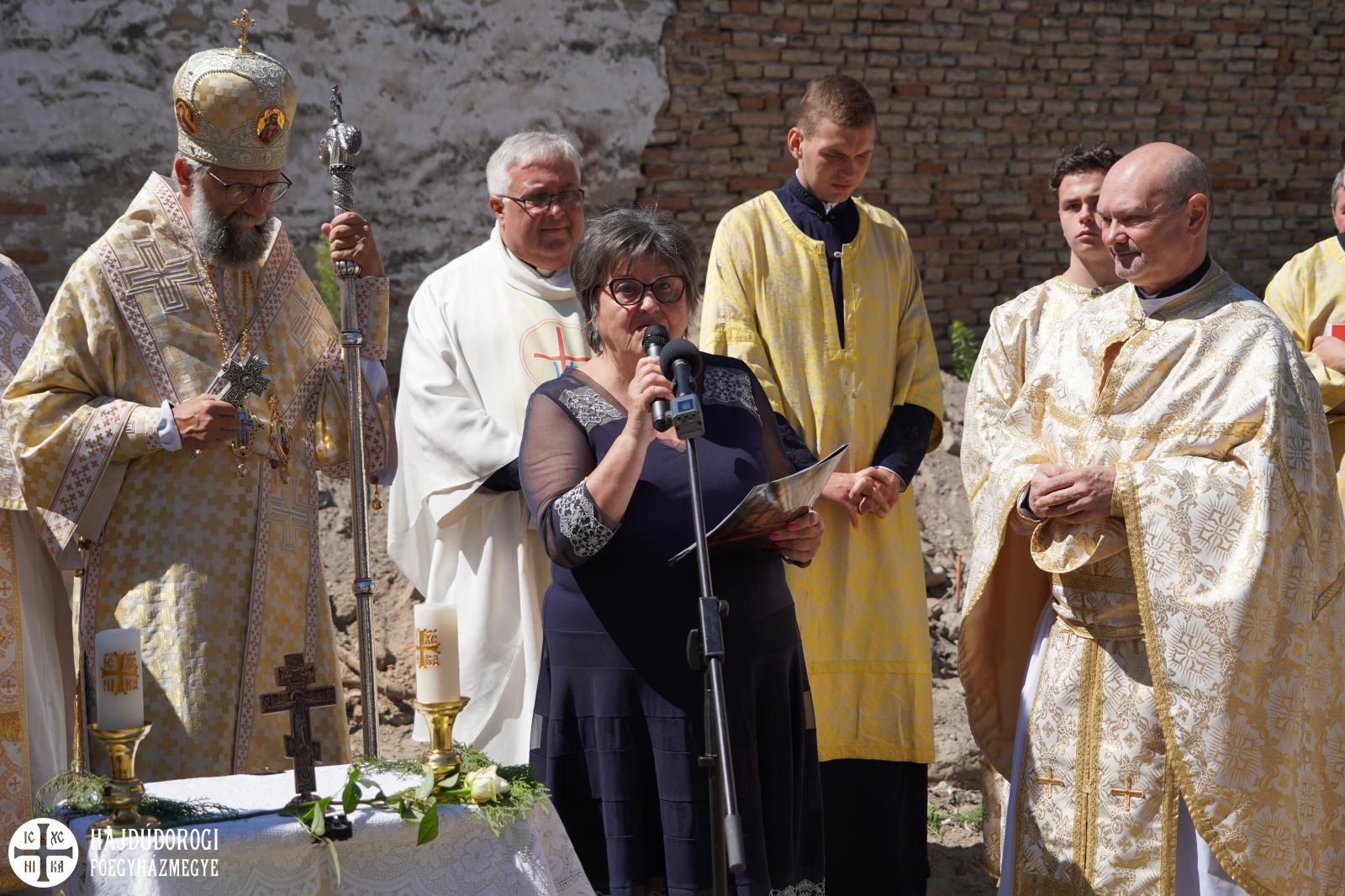 Feczák László az alapkőletétel után elárulta: az időkapszulába a Krónikák első könyvének egy versét is belecsempészte: „Nos tehát, az Úr kiválasztott, hogy hajlékot, szentélyt építs neki. Légy állhatatos, és készítsd el” (1Krón 28,10). Ez a gondolat röviden és tömören foglalja össze nemcsak az ő, de a közösség feladatát is. László atya köszönetet mondott a helyi református közösség képviseletében Varga Nándor lelkésznek, hiszen a gyülekezet korábban fél millió forintot ajánlott fel a görögkatolikus templom megépítésére. Az eddigi támogatók között ott van dr. Ruszinkó Ádám egyetemi tanár és neje, Éva, László atya és felesége, Nagyezsda, Dudás László és Dudás György atyák és kedves családjuk. Az alapkőletételen részt vett tisztelendőasszony édesanyja, vértanú Csépes János atya lánya, kinek a közösségért való közbenjárásáért már évek óta imádkozik a Feczák és a Dudás család.