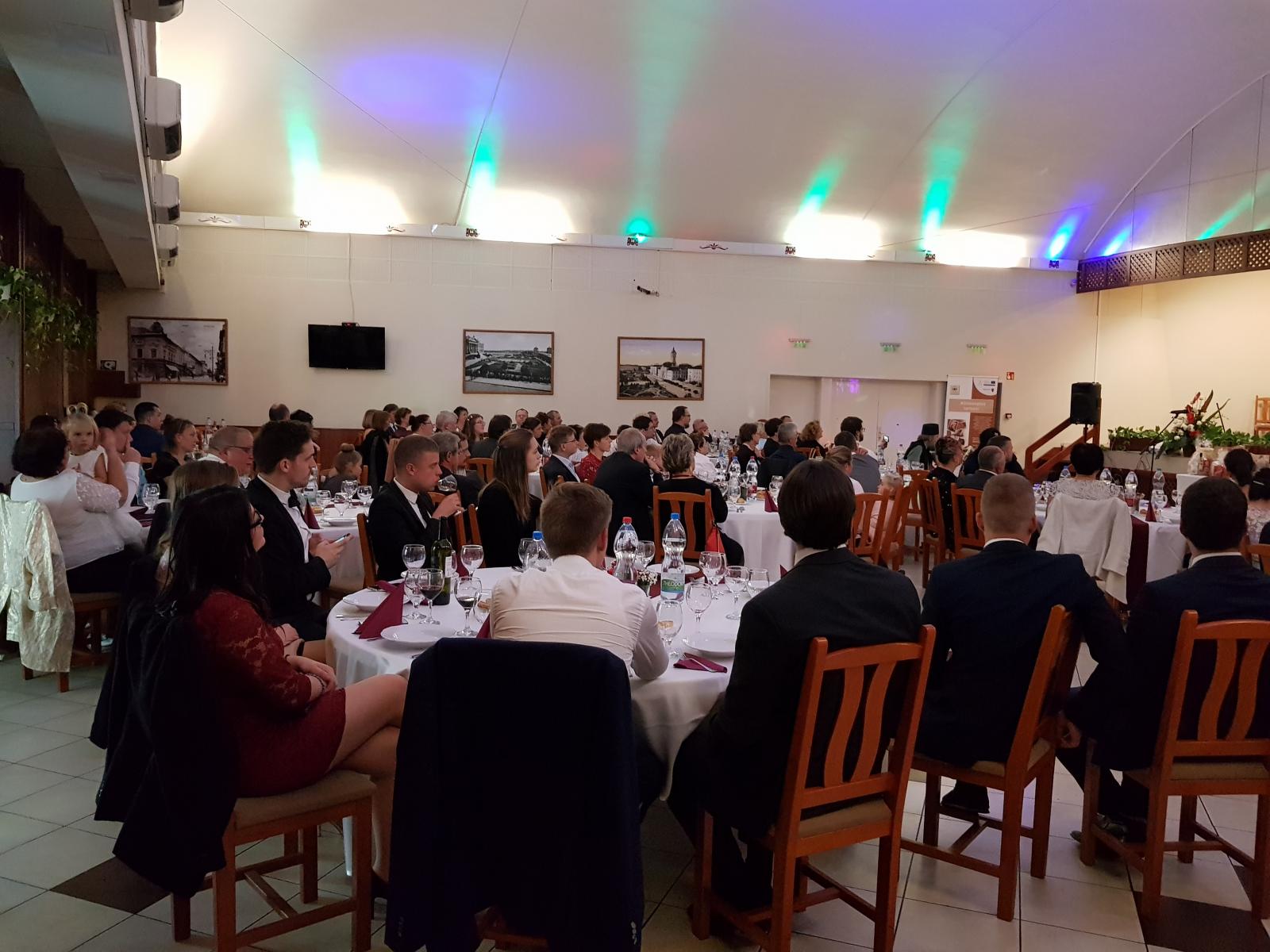 Ezen jeles események megünneplése végett az elmúlt hétvégén vendégünk volt Kocsis Fülöp érsek-metropolita atya, aki szombat délután érkezett. Az ő vezetésével vecsernye elimádkozásával kezdtük meg az ünneplést. Már itt is szép számmal gyűltünk össze, és sikerült meghitt hangulattal megtölteni templomunkat. Ezek után gyorsan összeszedtük magunkat, és átmentünk a pár száz méterre található Vármegye étterembe, ahol 13. alkalommel rendeztünk alapítványi, jótékonysági bált. Ezen bálok bevétele mindig egy előre meghatározott konkrét cél. A mostani bál bevételét a parókia udvarának felújítására szeretnénk fordítani. De mint már fentebb említettem, ezen a bálon más, fontosabb eseményeket is ünnepeltünk.