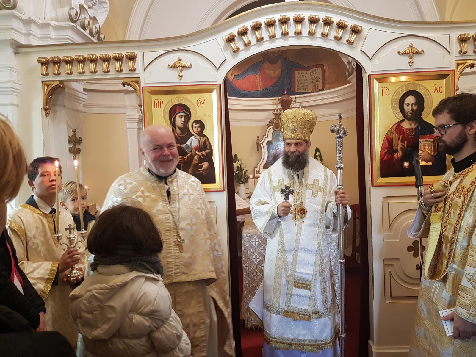 Másnap, mindezen események megkoronázásaként érsek atya vezetésével utrenyét imádkoztunk 08.30-tól, majd 10.00-kor kezdődött a püspöki Szent Liturgia. A szertartás végeztével mindannyian átmentünk a parókiára, egész pontosan a kápláni lakásba, az ilyenkor esedékes közös kávézásra. Most azonban nem csak egy kis beszélgetésre került sor, hanem érsek atya fel is szentelte a mostanra elkészült lakóhelyet.
