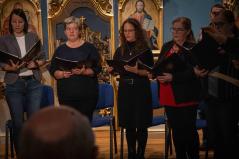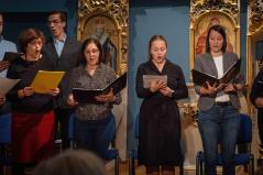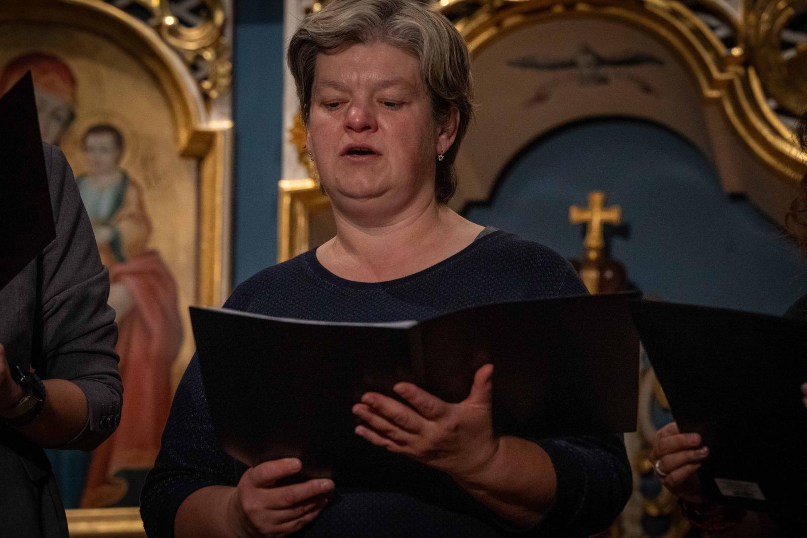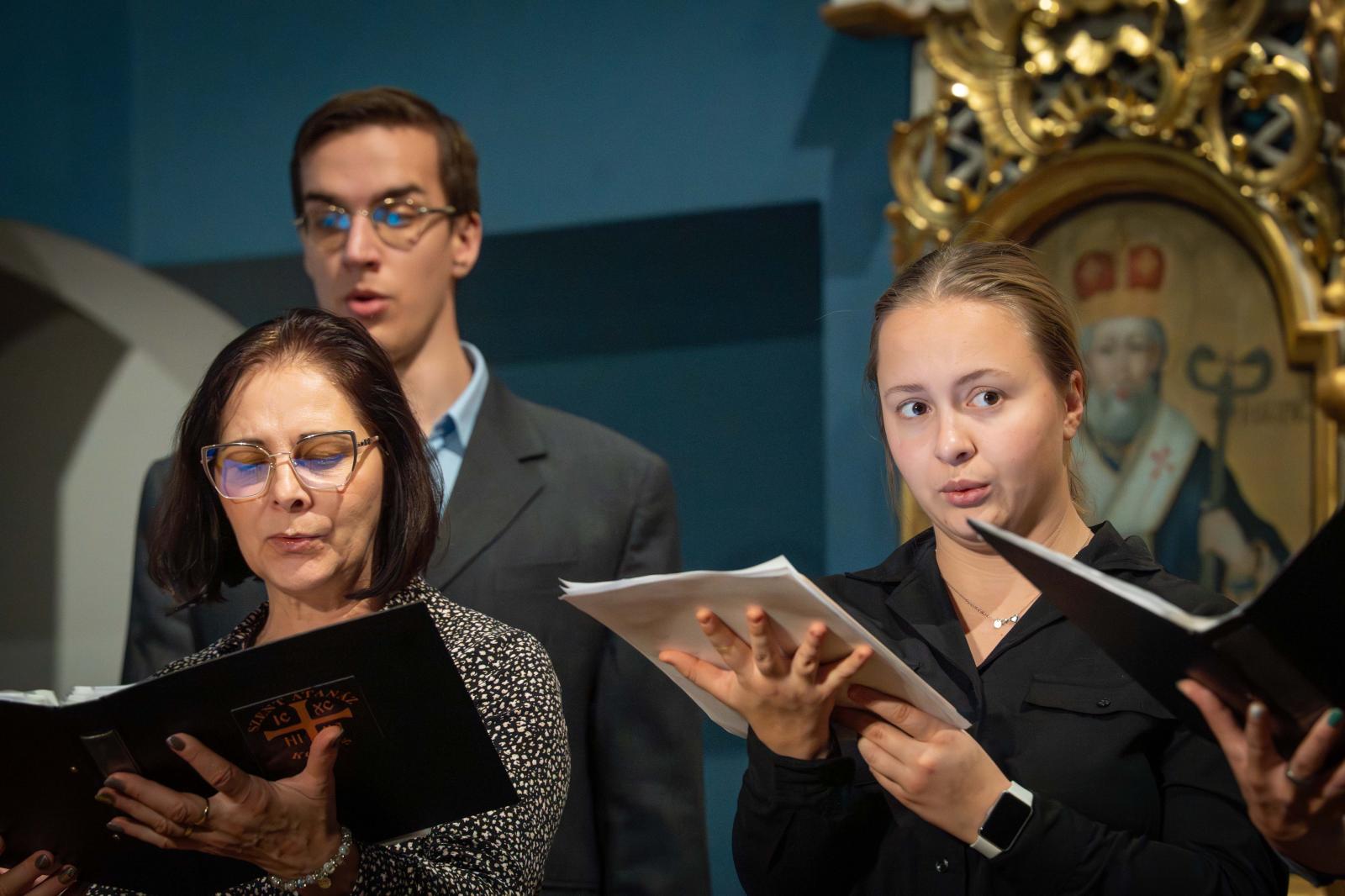 Ahogy megszokhattuk, most sem „száraz” előadásról volt szó, hanem a kántorokból, főiskolai hallgatókból és zenekedvelőkből álló Szent Atanáz kórusnak, valamint Forgács Péter operaénekesnek köszönhetően a történelmi és kulturális kitekintést követően a résztvevők meg is hallgathatták a dallamokat, sőt, közös éneklésre is sor került. Hallhattunk karácsonyi kánonokat, Dmitrij Bortnyanszkij Z nami bog (Velünk az Isten) című himnikus kórusművét, a homrogdi cigány karácsonyi éneket, Csajkovszkij Miatyánkját, és egy bizánci Istenszülő-éneket. Az est különlegessége volt, hogy Forgács Péter operaénekes a karácsonyi katavászia I. irmoszát öt nyelven énekelte el a kórus kíséretével.