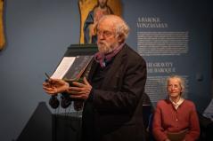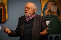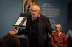 Bubnó Tamás Liszt-díjas karnagy, Magyarország Kiváló Művésze, a Szent Efrém férfikar művészeti vezetője a Kárpát-medencei karácsonyi dallamvilágról, a keleti egyház Szent Miklós-kultuszáról és görögkatolikus karácsonyi népszokásokról beszélt a hallgatóságnak a tőle megszokott humoros, mégis mély tudásról tanúskodó stílussal.