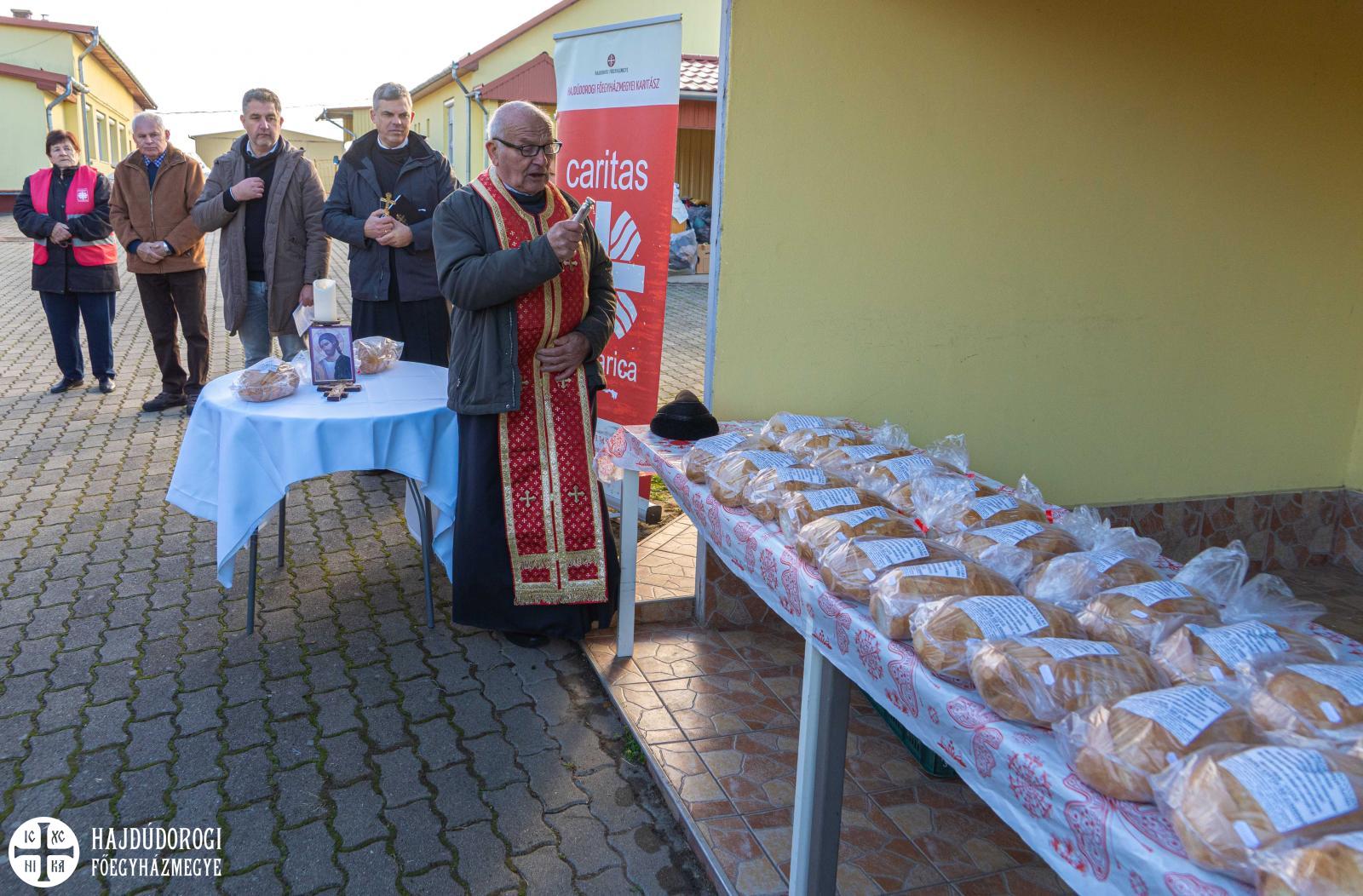 Tarapcsák János nyírmártonfalvi parókus áldotta meg a kenyereket, melyet ezúton is köszönünk a Mátyás Pékségnek: Garamvölgyi Attilának és családjának. Az étel mellett meleg ruhákat, takarókat, kabátokat, ágyneműt is osztottak a megjelenteknek, hiszen a téli időszakban nagy szükségük lehet rá a családoknak. Ennek koordinálásában Balogh Viktor, a Karitász civil vezetője volt segítségükre.