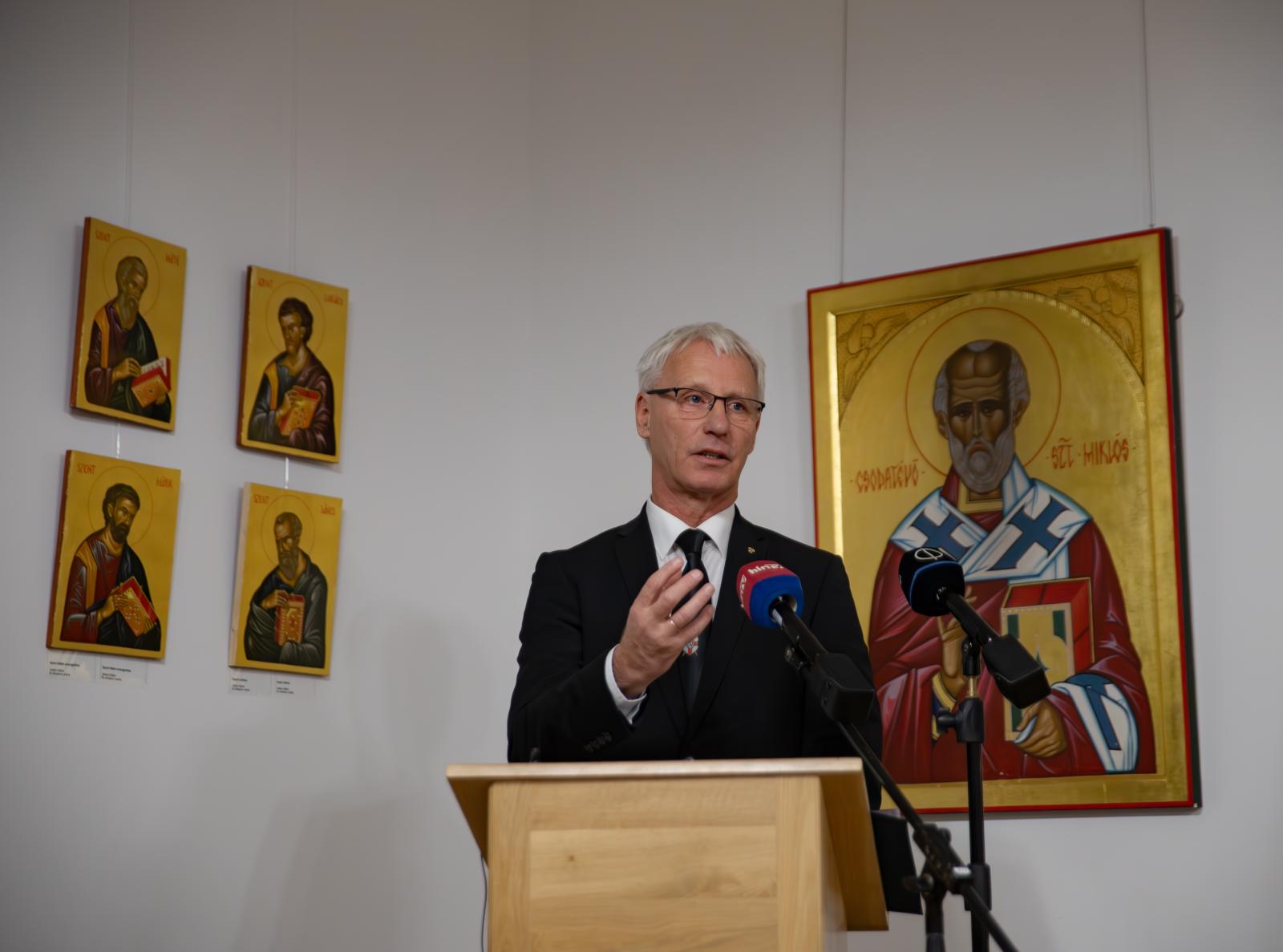 Soltész Miklós, az egyházi és nemzetiségi kapcsolatokért felelős államtitkár beszédében emlékeztetett Szent II. János Pál pápa szavaira, aki azt szerette volna, hogy az egyház "mindkét tüdejével lélegezzen", a nyugatival és a keletivel is. Szólt arról is, hogy – mivel kelet és nyugat határán van Magyarország – szerepe van a béke közvetítésében, megteremtésében. Ebben jut kiemelt feladat a görögkatolikus egyháznak, hiszen ahogy ezt II. János Pál pápa is felismerte, a görögkatolikus egyház a “két tüdőt összekötő, létfontosságú hörgő szerepét tölti be”. Soltész Miklós elmondta, a közelünkben dúló háború roncsolta a két tüdő állapotát és az Ukrajnában is jelenlévő, az ortodoxiával és Rómával is szoros kapcsolatokat ápoló görögkatolikus egyháznak nagy szerep juthat az ortodoxia és a katolicizmus közötti sebek gyógyításában. Végezetül elmondta: “A magyar kormány számára természetes, hogy egy ilyen épület átadásával támogatja egyházai jövőjét és gyarapodását.”