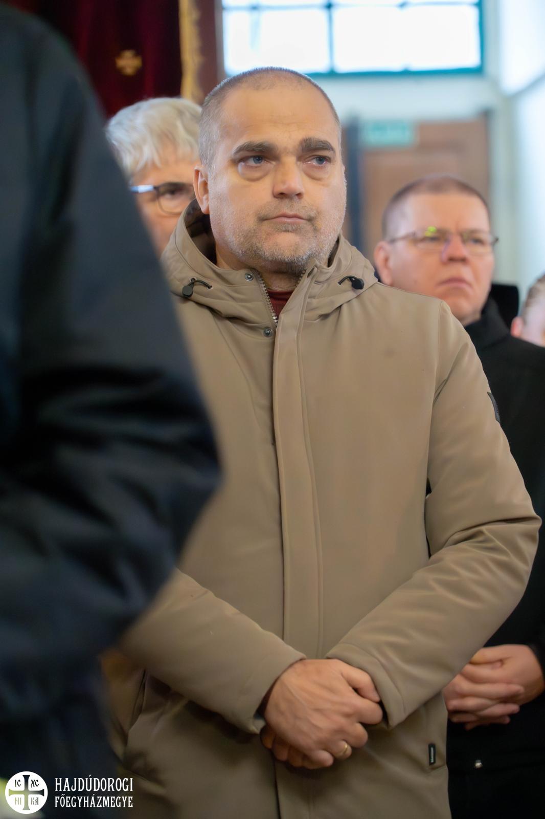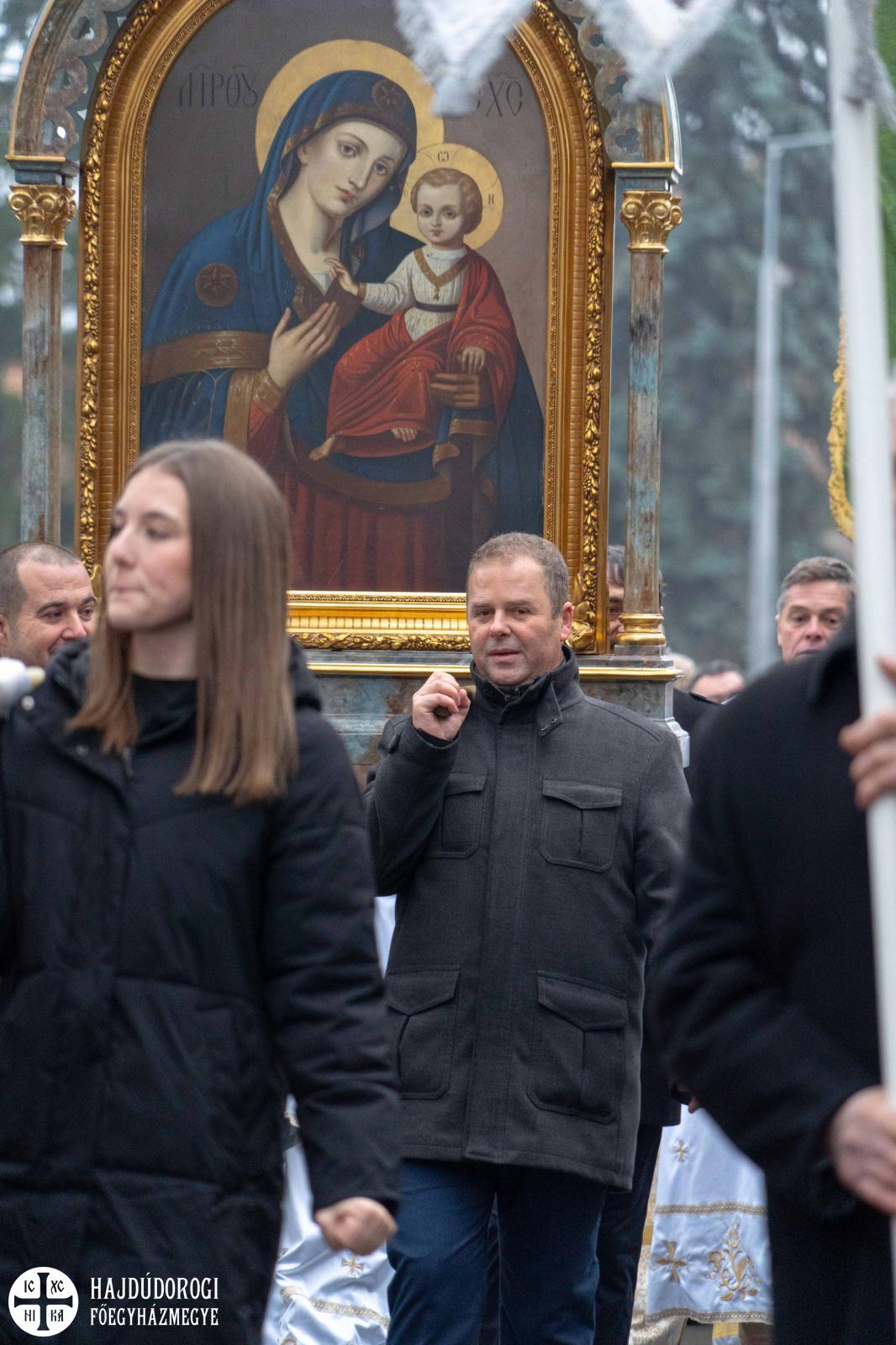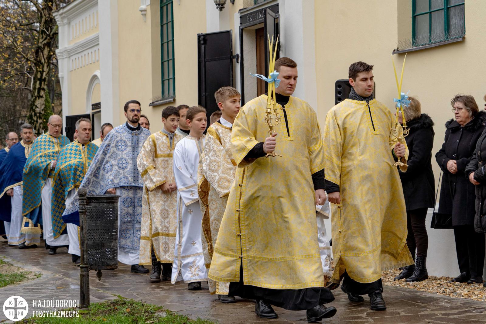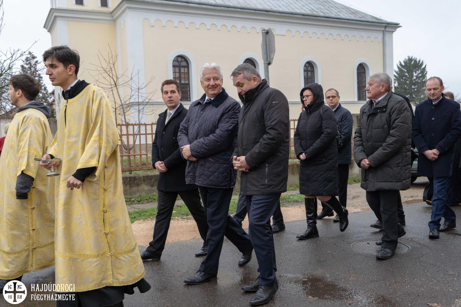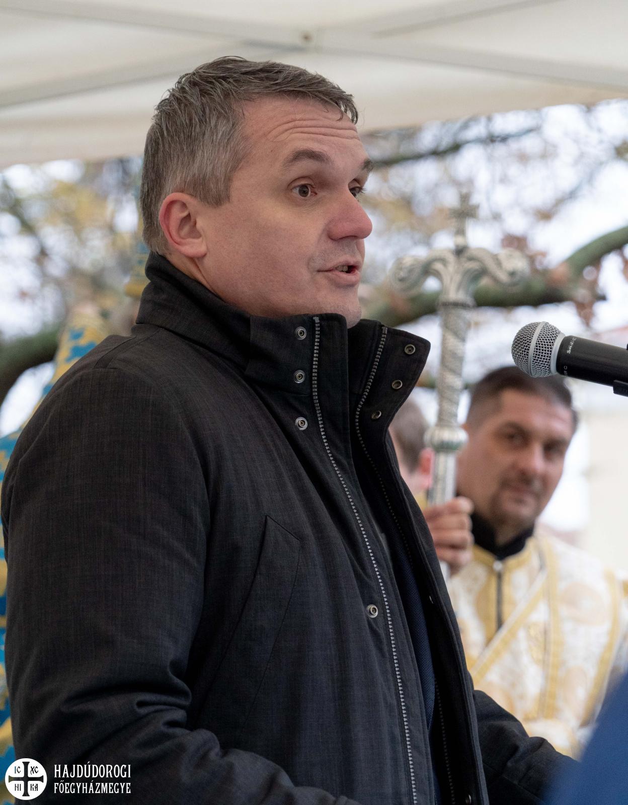 Az ünnepség részeként Horváth Zoltán polgármester is köszöntőt mondott. Beszédében hangsúlyozta, hogy a megújult templom a 2025-re meghirdetett szentév gondolatiságához is kapcsolódik, amelynek mottója: „A remény zarándokai”. A polgármester történelmi személyek – többek között Bocskai István, Farkas Lajos vagy Jaczkovics Mihály – példáját idézte, akik a magyar görögkatolikus identitás formálásában meghatározók voltak. Kiemelte, hogy a templom szépsége „magasba emel és messzire elvezet”, s a felújításért hálát kell adni Istennek és mindazoknak, akik hozzájárultak a munkához. Hangsúlyozta: a templomépítés a jövőbe vetett hit kifejezése, és minden hívőnek feladata „templomépítővé” válni – saját talentumai szerint.
