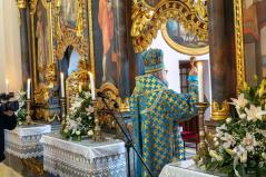 A megújult székesegyházat Kocsis Fülöp metropolita áldotta meg a templom címünnepén. Homíliájában a valódi gyógyulás és békesség üzenetét hangsúlyozta. A Szentírásból vett példák kapcsán kiemelte: Krisztus az igazi béke, aki testében bontotta le az emberek közötti és az ember és Isten közötti „válaszfalat”, vagyis az ellenségeskedést. A békétlenség a legsúlyosabb betegség, amely halálba vezet – mondta –, mert bármekkora egészség vagy jólét értelmét veszti, ha nincs béke. Krisztus nem pusztán kibékítette a feleket, hanem saját áldozata által semmisítette meg az ellenségeskedést. A metropolita rámutatott, hogy Jézus testileg és lelkileg velünk maradt az Eucharisztiában, és az egyház Krisztus titokzatos testeként ennek a jelenlétnek hordozója. A hívek akkor tudnak egységben lenni Istennel és egymással, ha élő tagjai maradnak az egyháznak, és életük is „templommá válik”.