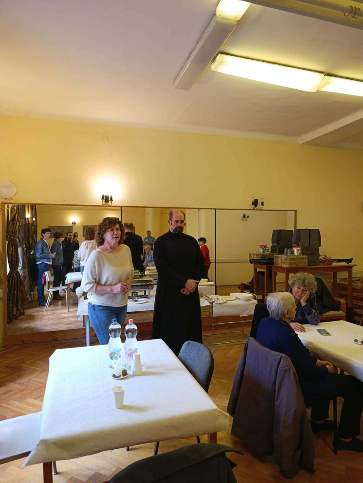 Az alkalom kezdetén Rádulyné Dravetzky Andrea köszöntötte a megjelenteket a Ruszin Nemzetiségi Önkormányzat nevében, majd ismertettem a délután programját. Ezt követően Gábor atya asztali áldásával vette kezdetét az ebéd, amely egyben a közösségi együttlét első, meghitt állomása is volt.
