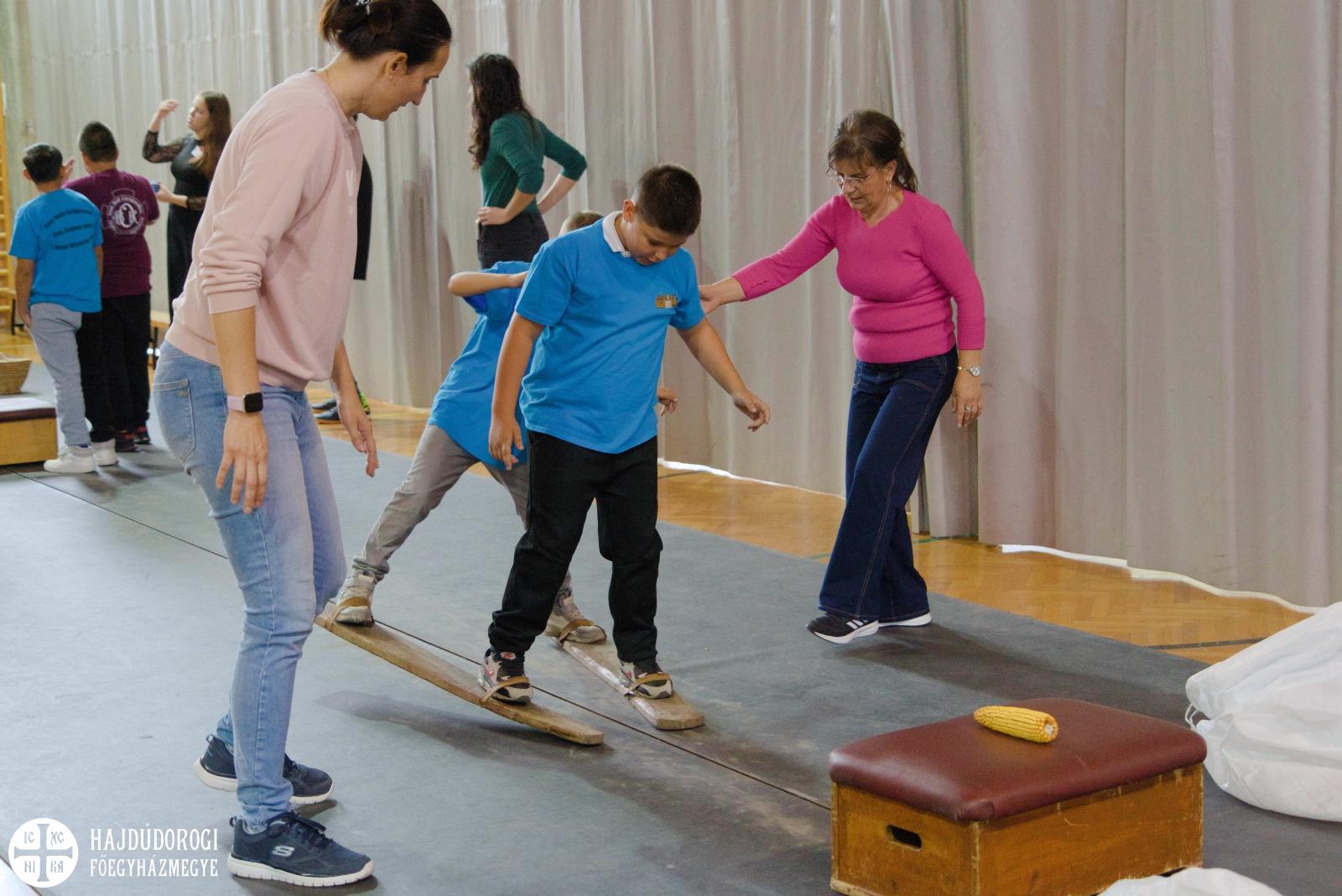 A mozgásos feladatok sem maradtak el. Az iskola tornatermében zsákban futás, nyári sí és nemezlabdadobás fogadta a csapatokat.