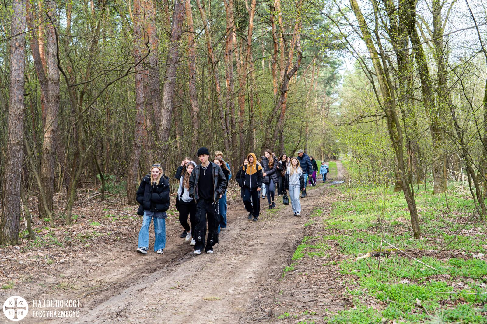 A gimnáziumból több mint 30 fiatal érkezett a Nyírerdő Zrt. Debreceni Erdészetének Kartács utcai központjához. Rövid, egészséges erdei sétát követően érkeztünk a fásításra kijelölt, nagyjából másfél hektáros területre.