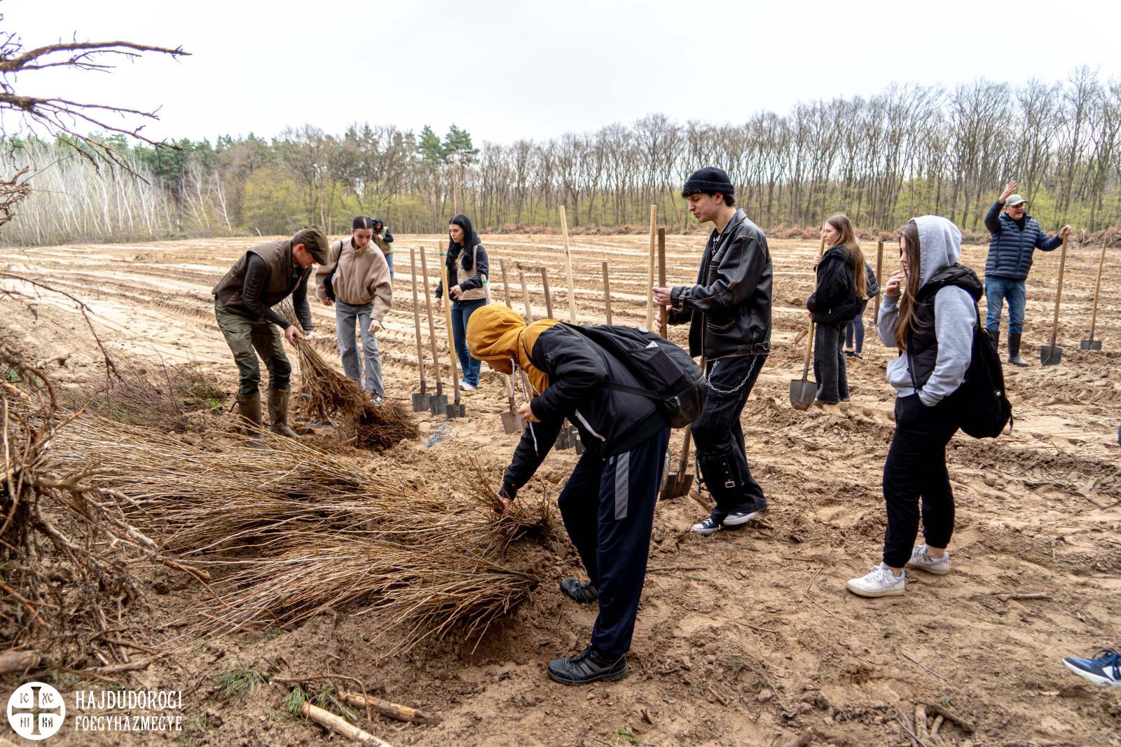 Az eligazítást követően a diákok ásót ragadtak, és rövid idő elteltével már szép számban álltak az elültetett csemeték. A munkában az erdészet munkatársai és Szilágyi Gábor, a gimnázium lelkiigazgatója is segített a fiataloknak.