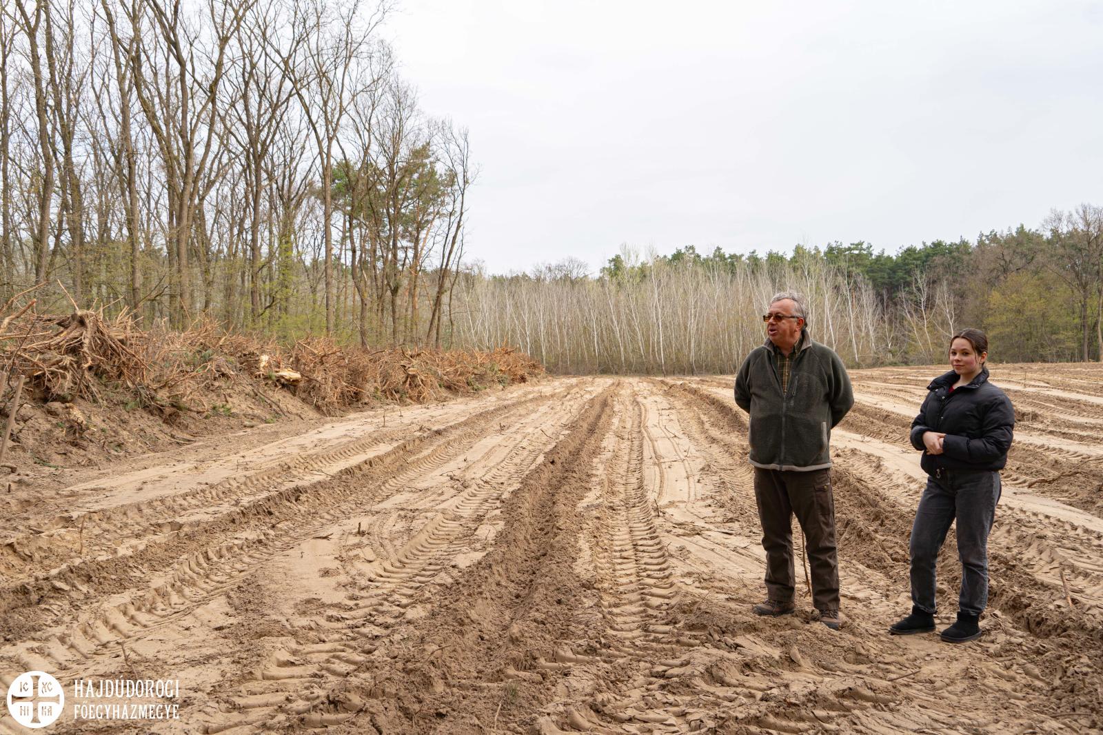 A faültetés helyes módját Barta Péter kerületvezető erdész mutatta meg a jelenlévőknek. A területen lévő, nagyjából 60 éves, vágásérett fenyő állományt januárban termelték ki. Nemrégiben megtörtént a terület felszántása, tuskózása.