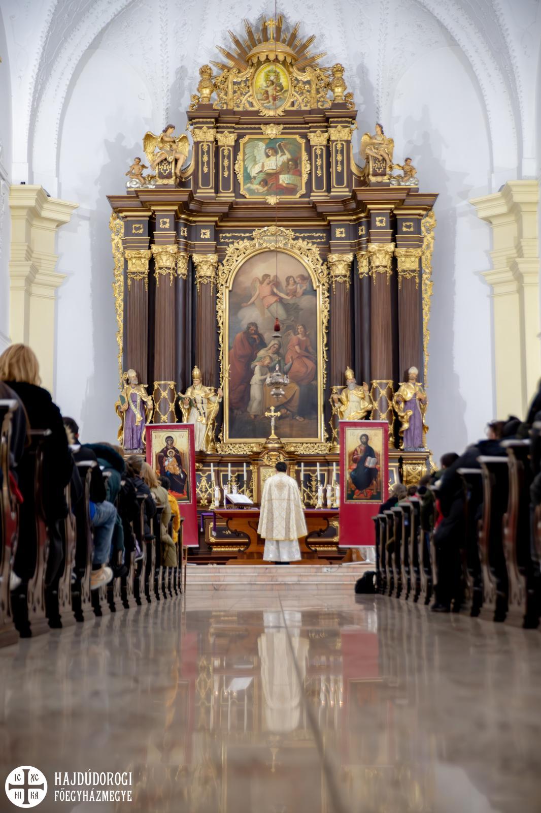 A Szent Liturgiát Sivadó Miklós és Szaplonczay Márk atya vezette a róma katolikus székesegyházban. Az óvodalelkész arra igyekezett felhívni a figyelmet prédikációjában, hogy micsoda tervező az Úr. Hiszen már előre megtervezte azt is, hogy az üdvözítő Jézus Krisztus ettől a szeplőtelen Istenanyától fog születni. „Nagyon sok évezredekre előre tervez az Isten. És a mi életünket is eltervezte” – fogalmazott Márk atya.