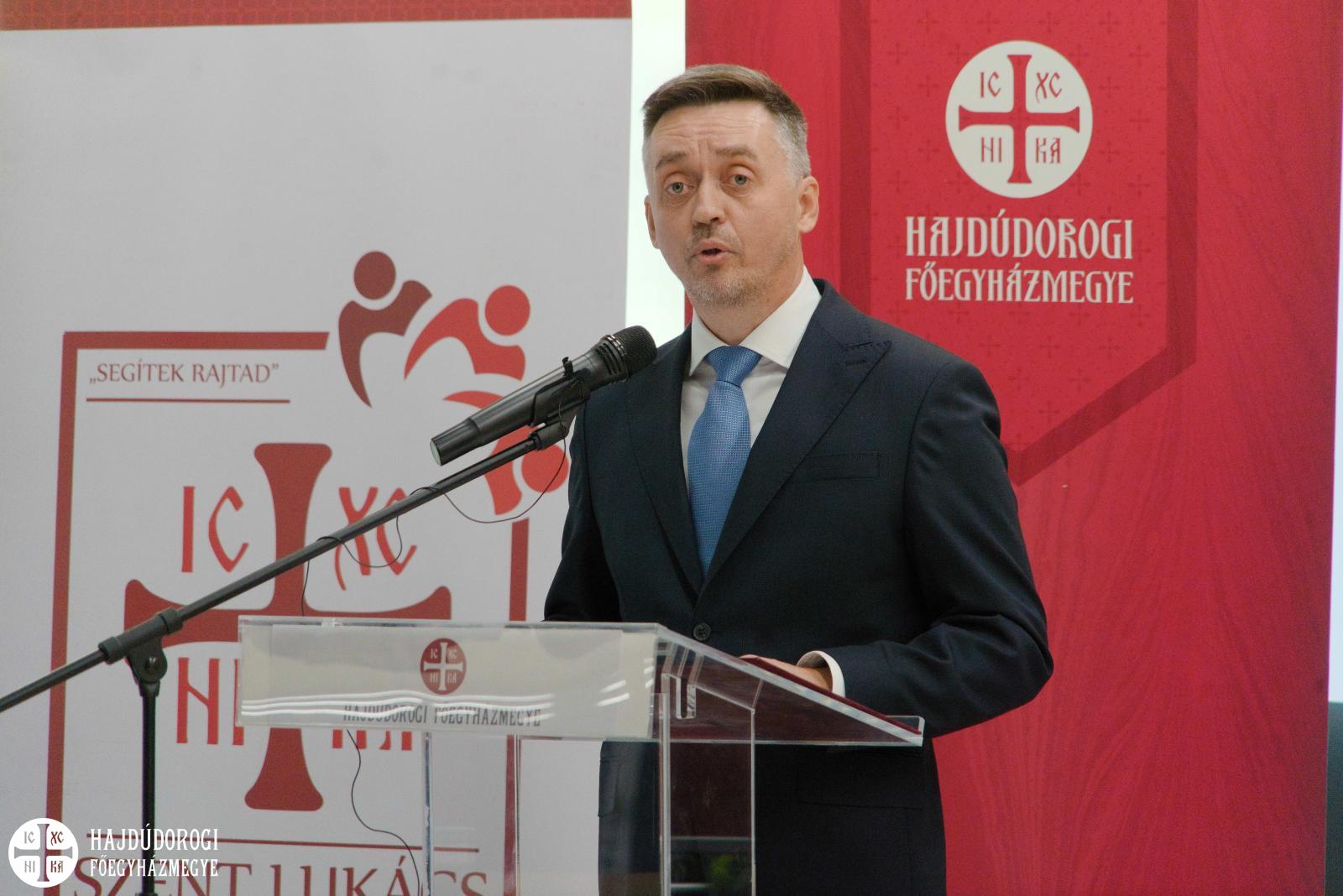„Ez a mai alkalom nemcsak a szociális és gyermekvédelemben dolgozó szakemberek és nevelőszülők ünnepe, hanem a Szent Lukács Görögkatolikus Szeretetszolgálat 15 éves jubileuma is. Ez egyfajta üzenet is a társadalomnak: a Hajdúdorogi Főegyházmegye intézményeiben dolgozók belső ereje, kitartása és hivatásszeretete példaként állhat mindenki előtt.” Mint fogalmazott: a szociális szférában dolgozók munkájukkal bizonyítják, hogy a szeretet és a hit ereje mindig erősebb a világ zaja és előítéletei fölött.