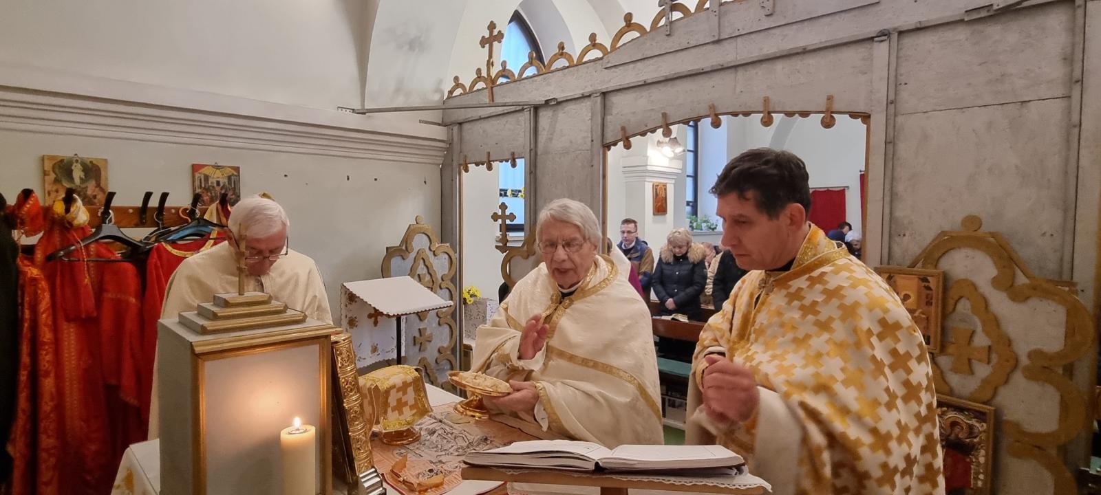 December 8-án úgy megtelt a kis kápolna, hogy sokan a kápolnán kívül, a szabadban állva követték az ünnepi Szent Liturgiát. Mihály atya hitvese, Ágnes tisztelendő asszony már a Mennyei atya keblén, gyermekeik és családjaik a közösséggel együtt ünnepelték ezt a ritka és szép ünnepet.
