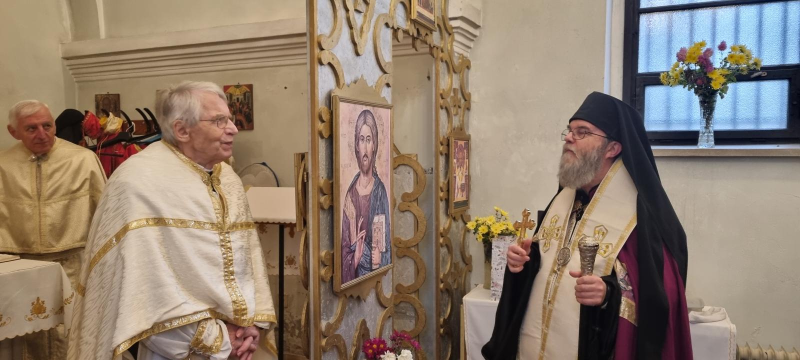 Az ünnepi szertartás fényét emelte Atanáz püspök atya jelenléte, hiszen Mihály atya aktív szolgálati éveit a Miskolci Apostoli Exarchátus különböző parókiáin töltötte.