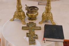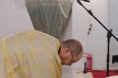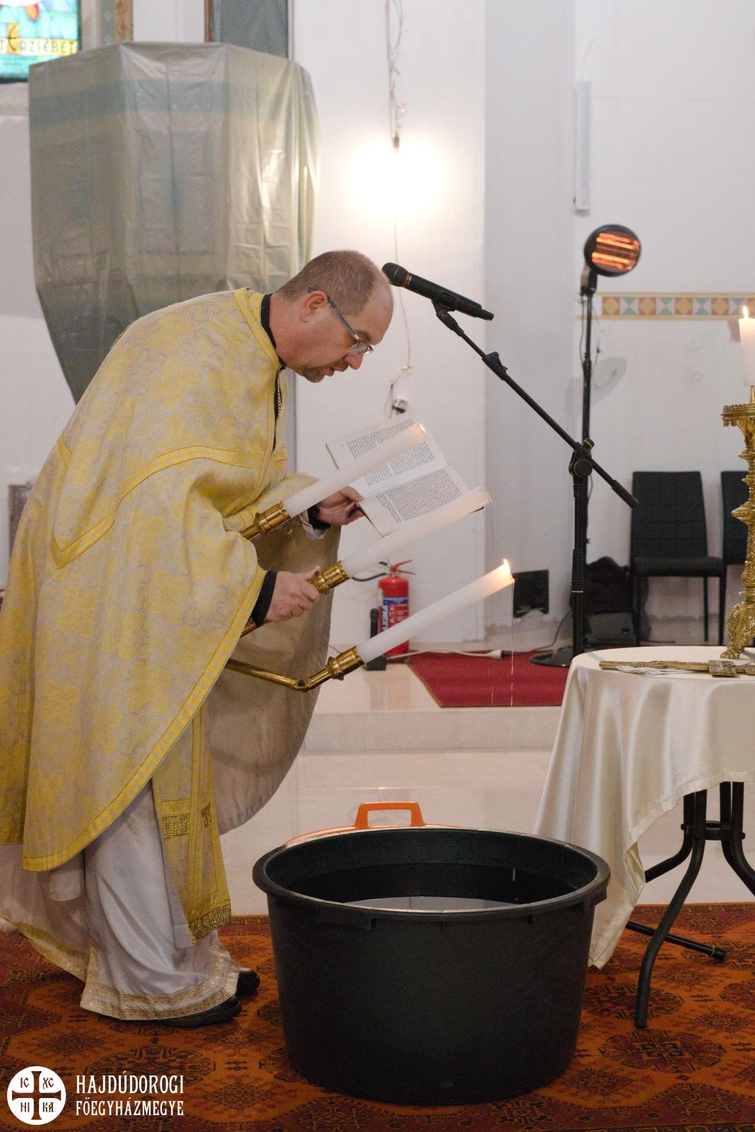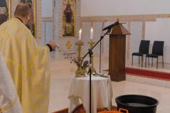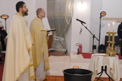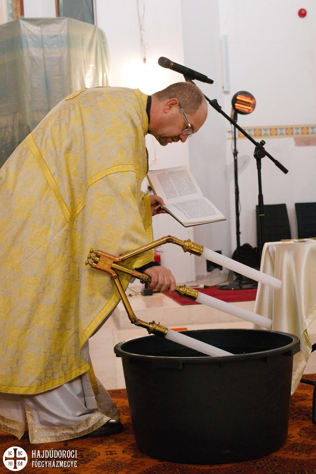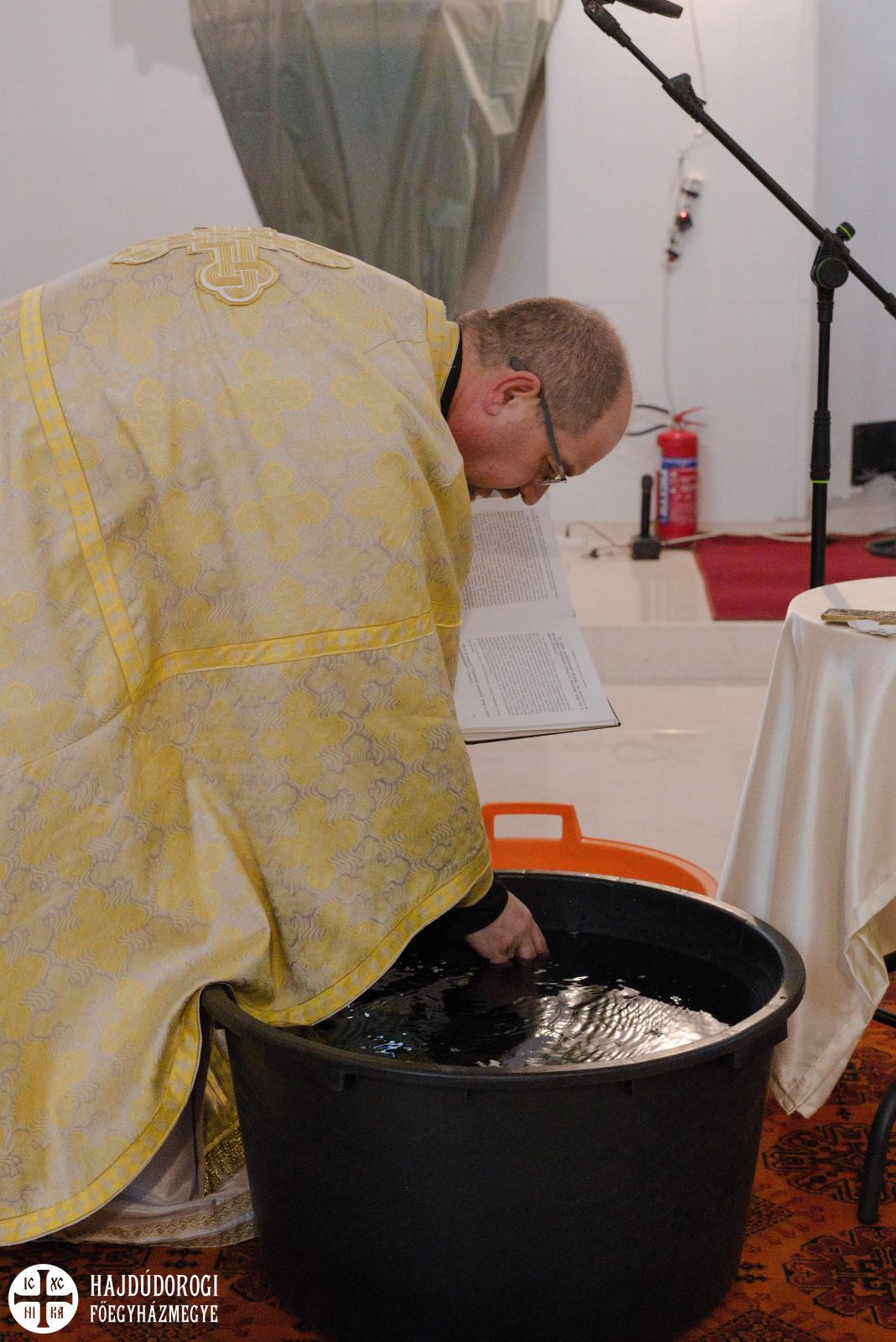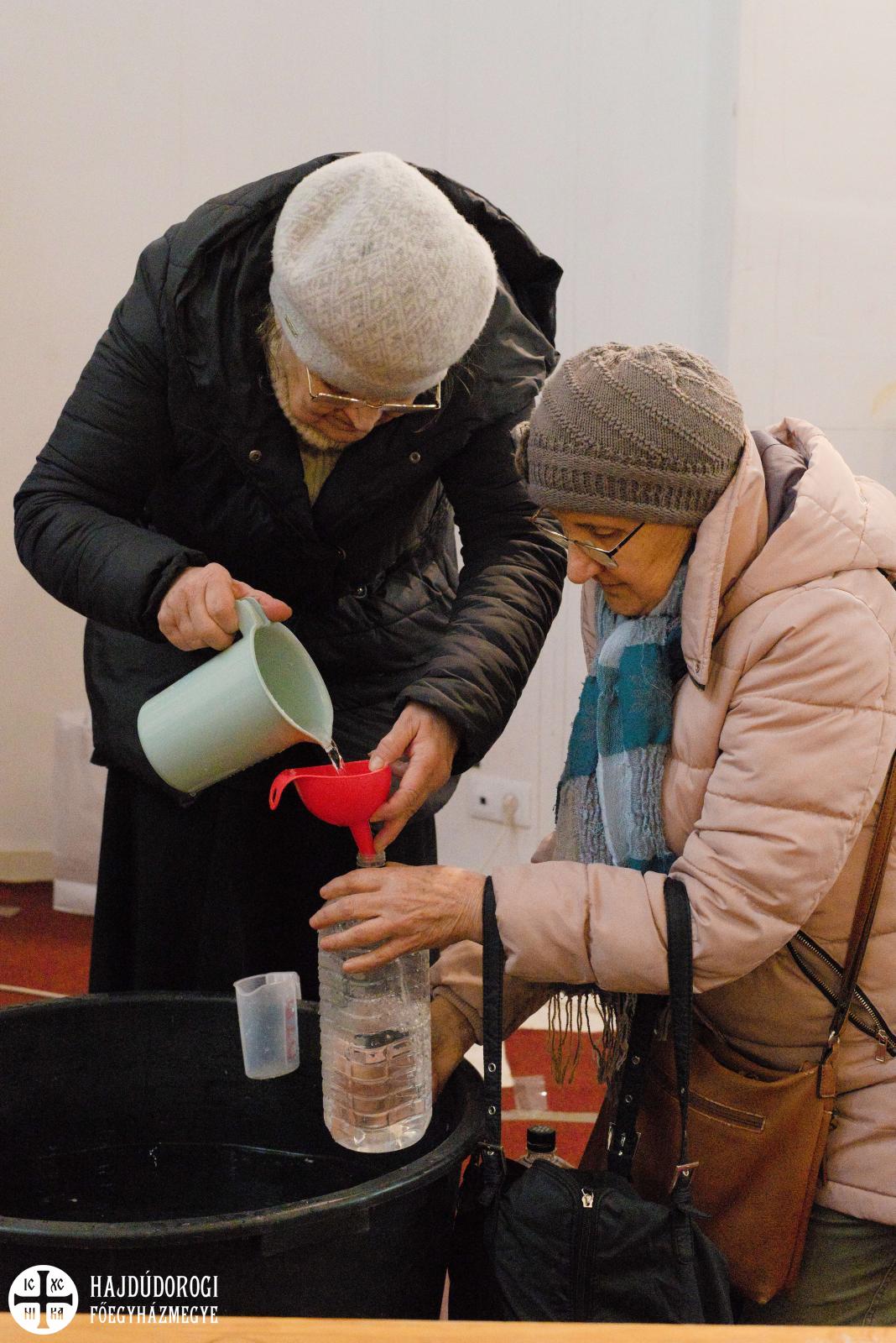 A vízszentelés szertartását István és Miklós atya együtt végezték. A megszentelt vízzel főhelynök atya a templomot és a híveket is megáldotta.