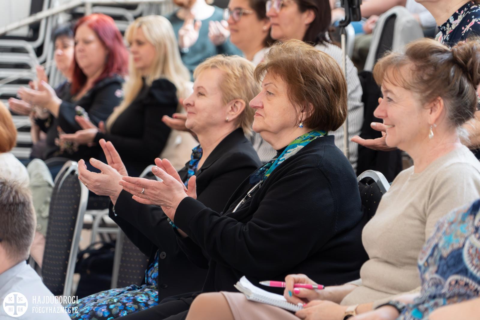 Hangsúlyozta, hogy a magyar ének-zene oktatásban fontos az értékközvetítés, ezért arra bíztatta a jelenlévőket, bátran használjanak klasszikusokat az órákon a Mesterséges Intelligencia által gyártott vagy a rajzfilmekben hallott dallamok helyett. A résztvevők eszköztára ennek mentén többek között Bach, Dvorak és Muszorszkij műveivel gazdagodott, de megismertek svéd és afrikai dallamokat is.