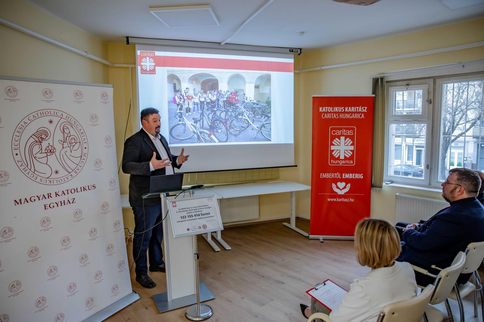Ezt követően Fehér Ferenc, a Kárpátaljai Szent Márton Karitász igazgatója ismertette azokat a programokat, amelyek a befolyt adományokból valósulnak majd meg. Beszámolójában hangsúlyozta: a támogatások létfontosságúak a helyi közösségek számára, és köszönetét fejezte ki a magyar hívek nagylelkűségéért. Elmondta, hogy intézményeik döntően külföldi adományokból működnek, és sokrétű szolgálatot látnak el. Hetente mintegy 1170 rászorulót, köztük 350 gyermeket, segítenek ingyenes ruházattal és étkezéssel. Emellett az adományok fogadását megkönnyítő logisztikai eszközök beszerzésére, betegek egészségügyi támogatására, valamint mentálhigiénés képzések szervezésére is szánnak forrásokat, különös tekintettel a háborúból hazatérő katonák mentális segítségnyújtására és a frontközeli térségek lakóira.