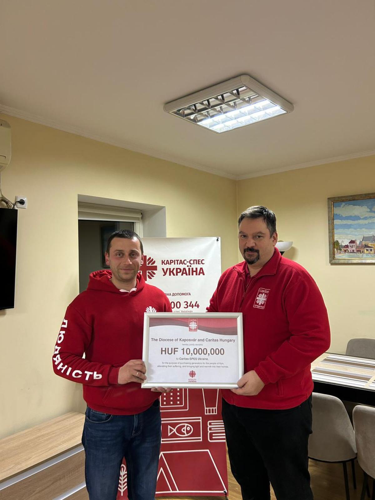 A 10 millió forintos pénzadományt – amelynek nagy részét a Kaposvári Egyházmegye gyűjtötte össze, és amelyet a Katolikus Karitász kiegészített – a szervezet a 32 darab, közel 10 millió forint összértékű generátorral együtt azonnal útnak indította.