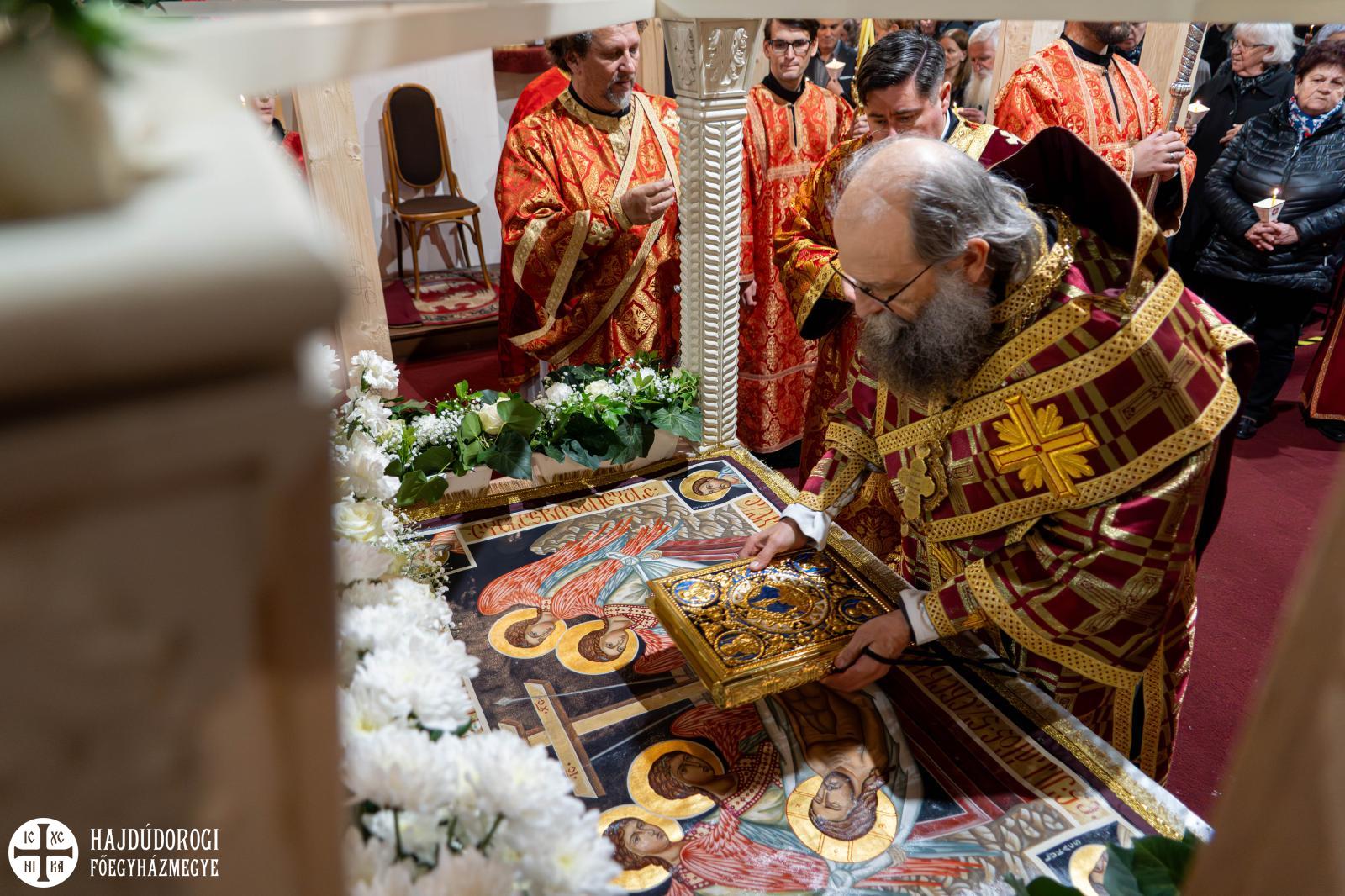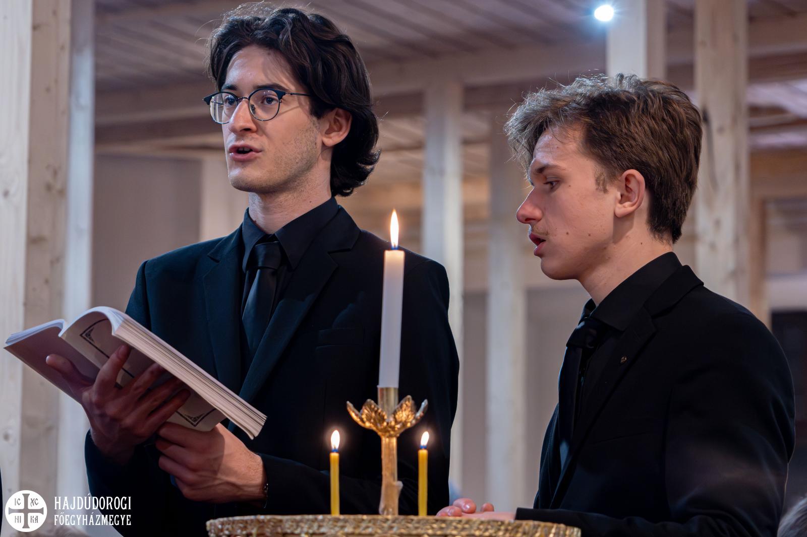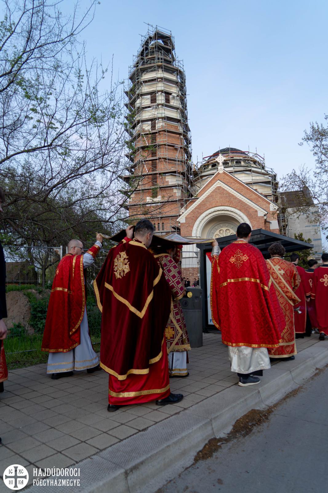 Nagypéntek délelőtt Királyi imaórákra várták a híveket Debrecenbe, délután pedig kezdődött az alkonyati zsolozsma, vagyis a sírbatételi vecsernye. A szertartást Kocsis Fülöp metropolita és a főegyházmegye papjai a templomban felállított sír körül végezték. Az aznap esti evangéliumi részlet így szólt: